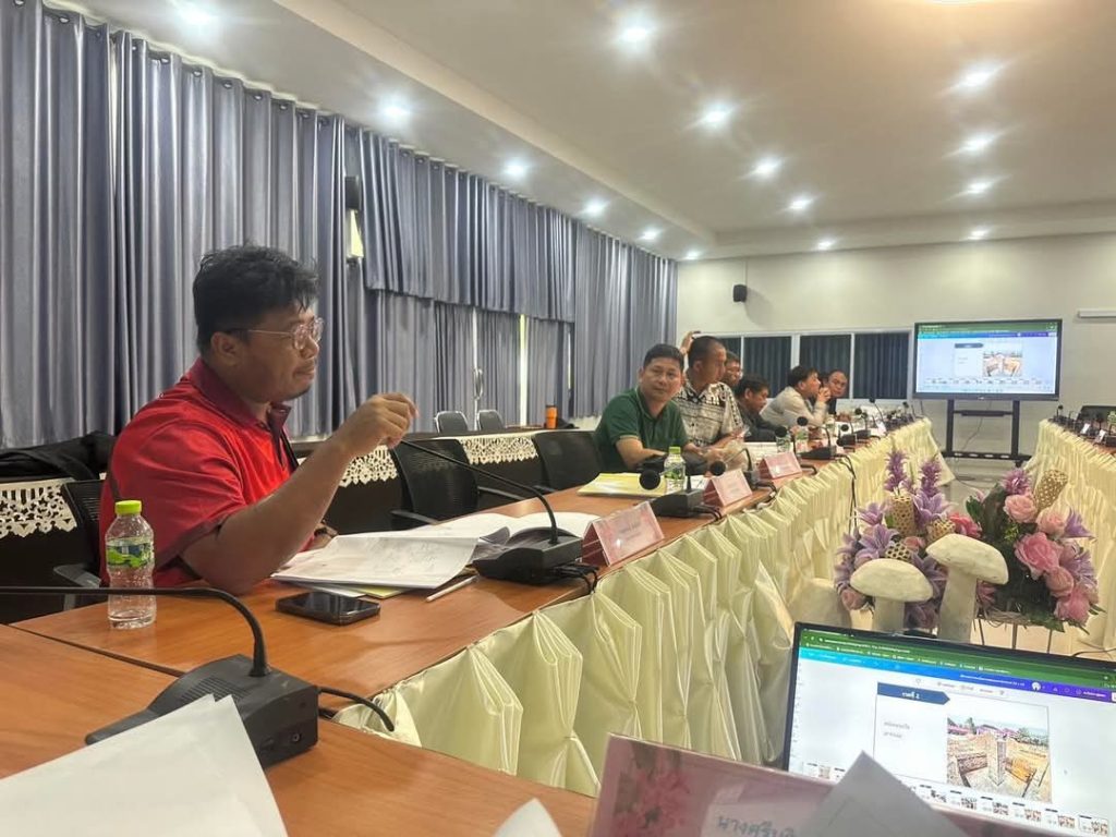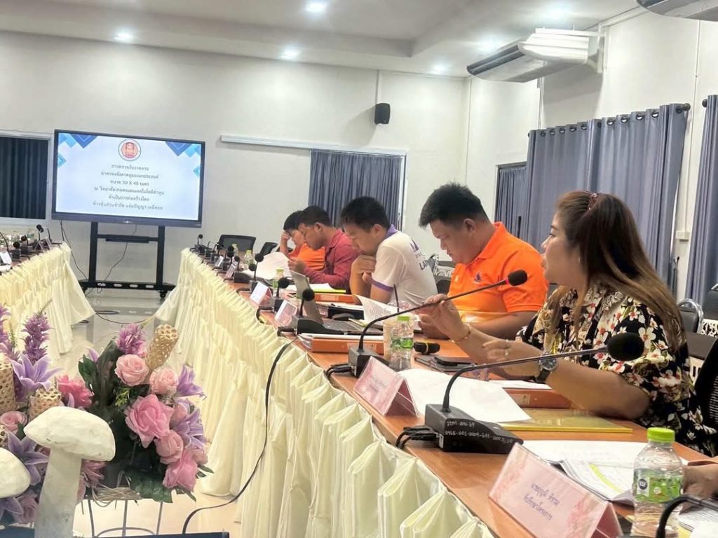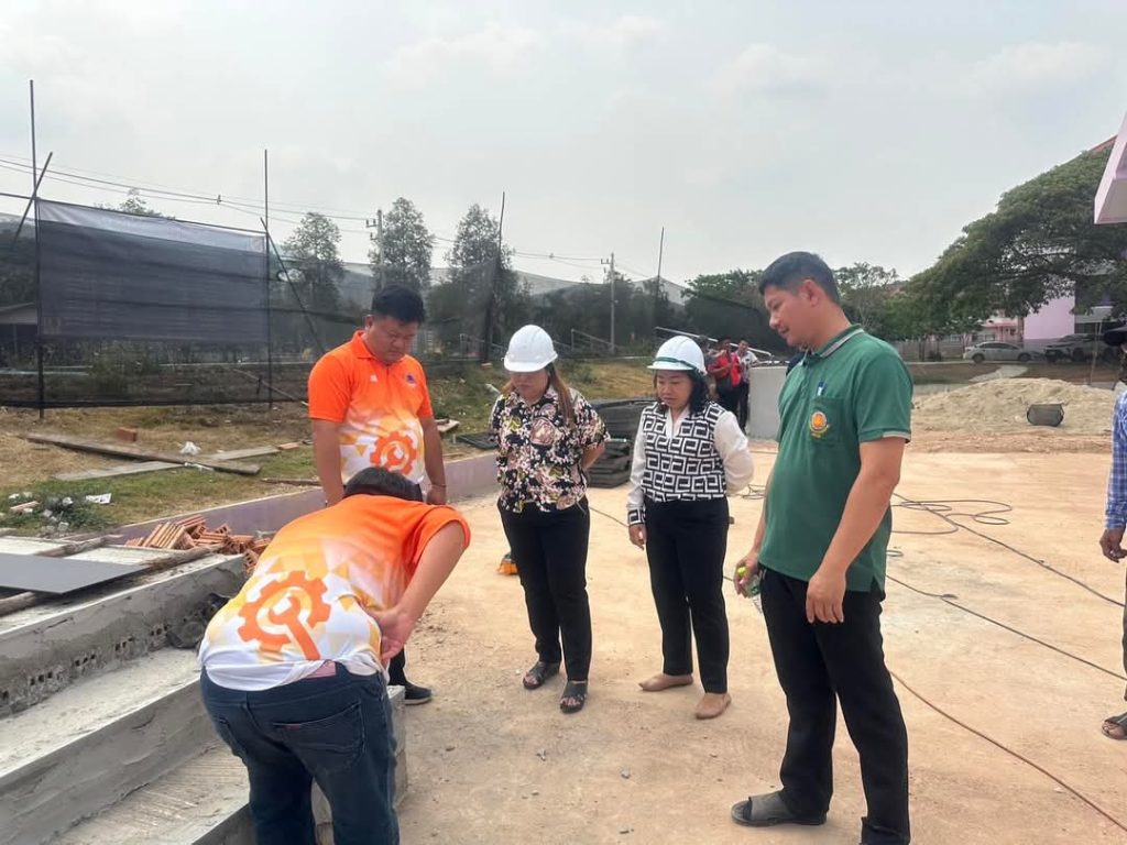คณะกรรมการเข้าร่วมการประชุมตรวจรับงาน งวดที่ 1 และ2 งานก่อสร้างอาคารหลังคาคลุมอเนกประสงค์