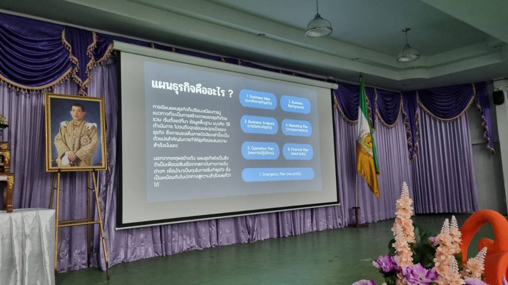 ระหว่างวันที่ 24 – 25 มิถุนายน 2566 นางสาวสุภัคคณิศร รุ่งเรือง ผู้อำนวยการ มอบหมายให้นายปองภพ อรุณไพรเป็นผู้แทนเป็นประธานในพิธีเปิดโครงการอบรมเสริมสร้างและบ่มเพาะผู้ประกอบการใหม่ประจำปีการศึกษา 2566