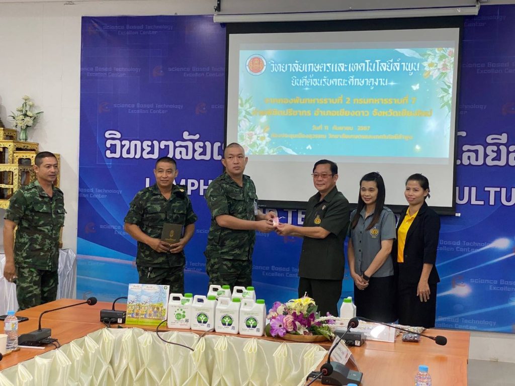 วันที่ 11 กันยายน 2567 เวลา 9.00 น. ดร. จักรกฤษณ์ ทิพเลิศผู้ อำนวยการวิทยาลัยเกษตรและเทคโนโลยีลำพูน พร้อมด้วยคณะผู้บริหาร ครูบุคลากร ให้การต้อนรับคณะศึกษาดูงานกองพันทหาราบที่2 กรมทหารราบที่ 7 ค่ายพิชิตปรีชากร อำเภอเชียงดาว จังหวัดเชียงใหม่นำโดย ผู้บังคับกองพัน พันโท วัชระ ถึกสุวรรณ์และร.ท.ศิวดล ปิ่นคำ ตำแหน่ง ฝอ.5 ร.7 พัน. 2 ( หัวหน้า ฝ่ายกิจการพลเรือน )เข้าศึกษาดูงานโครงการชีววิถีเพื่อการพัฒนาอย่างยั่งยืน วษท.ลำพูนและโครงการชีววิถี บ้านจำขี้มด เพิ่มพูนความรู้ทักษะในการทำเกษตรกรรม ด้านต่างๆจำนวน 12 นาย