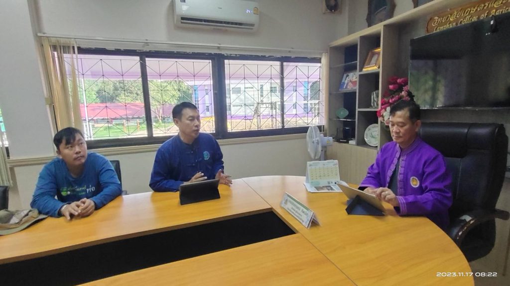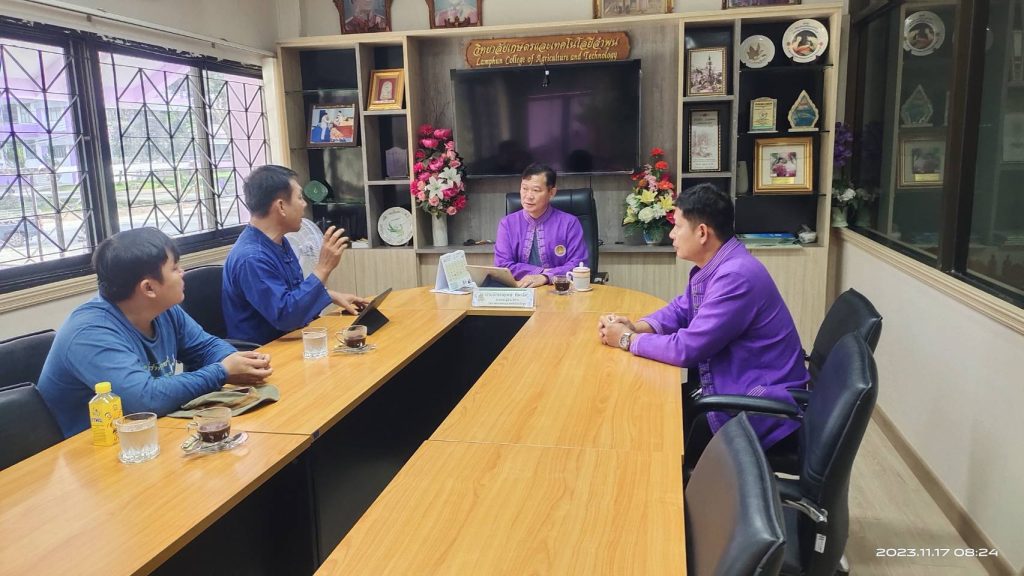 วันที่ 17 พฤศจิกายน 2566 เวลา 08.30 น. ดร.จักรกฤษณ์ ทิพเลิศ ผู้อำนวยการวิทยาลัยเกษตรและเทคโนโลยีลำพูนได้ประชุมร่วมกับการไฟฟ้าฝ่ายผลิตแห่งประเทศไทยรายงานความคืบหน้า การดำเนินงานโครงการชีววิถี เพื่อการพัฒนาอย่างยั่งยืนโคกหนองนา ในการเสด็จพระราชดำเนินทรงเปิดงานประชุมวิชาการระดับชาติของสมาชิกองค์การเกษตรกรในอนาคตแห่งประเทศไทยในพระราชูปถัมภ์ สมเด็จพระเทพรัตนราชสุดาฯ สยามบรมราชกุมารีครั้งที่ 44