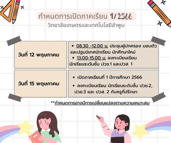กำหนดการเปิดภาคเรียน 1/2566 สำหรับ นักเรียน นักศึกษา ระดับชั้น ปวช. และ ปวส.ปีการศึกษา 2566