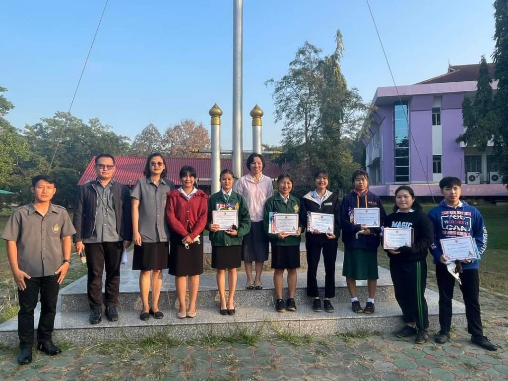 วันที่ 11 มกราคม 2566 นางสาวสุภัคคณิศร รุ่งเรือง ผู้อำนวยการวิทยาลัยเกษตรและเทคโนโลยีลำพูน มอบมายให้นางจุฬาลักษณ์ โคบายาชิ รองผู้อำนวยการฝ่ายพัฒนากิจการนักเรียน นักศึกษา มอบเกียรติบัตร และของรางวัลให้กับนักเรียน นักศึกษา ที่ได้รับรางวัลการประกวดการ์ดวันคริสต์มาส เนื่องในโครงการส่งเสริมทักษะด้านภาษาอังกฤษในเทศกาลคริสต์มาส (Brush up your English skill by Christmas festival for LCAT Students) ณ ลานทำกิจกรรมหน้าเสาธง วิทยาลัยเกษตรและเทคโนโลยีลำพูน
