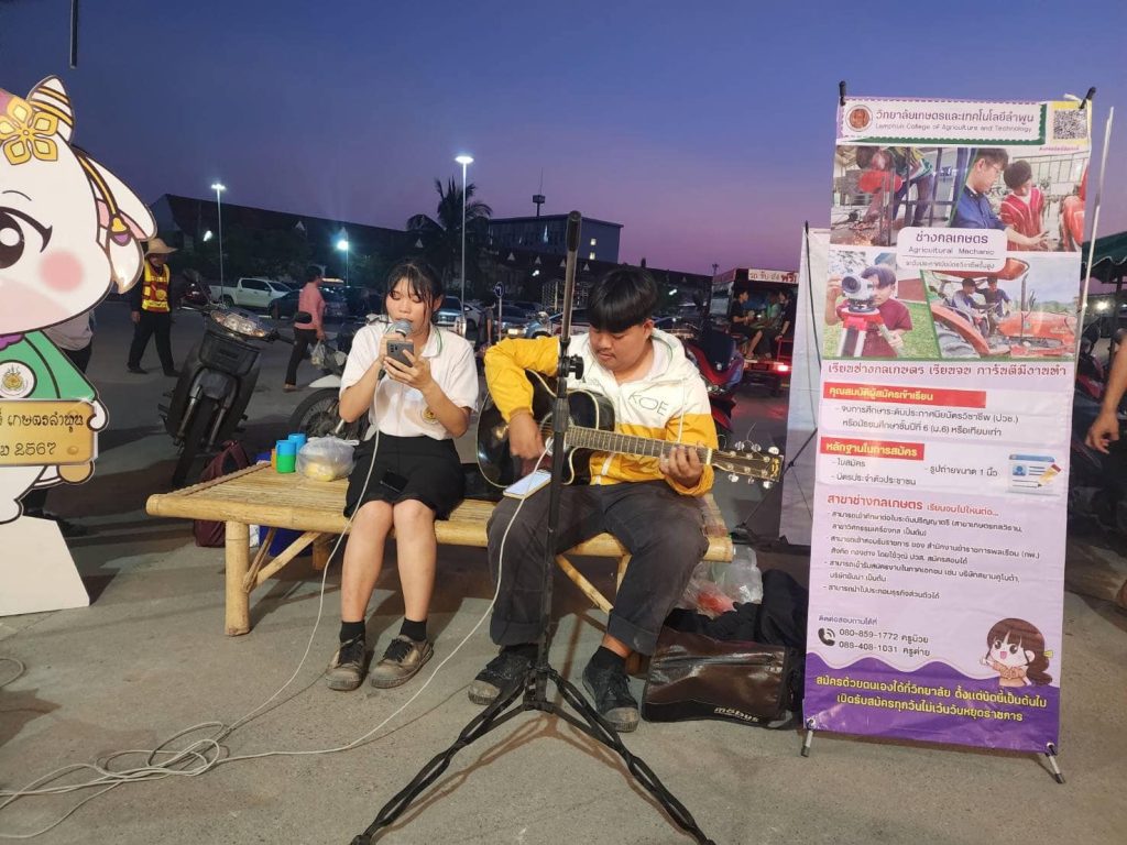 วันที่ 13 ธันวาคม 2566 ดร.จักรกฤษณ์ ทิพเลิศ ผู้อำนวยการวิทยาลัยเกษตรและเทคโนโลยีลำพูน มอบหมายให้นายสมพร ไขระวิ นำนักเรียน นักศึกษา ลงพื้นที่ทำกิจกรรมลานดนตรี และประชาสัมพันธ์การจัดงานประชุมวิชาการระดับชาติ องค์การเกษตรกรในอนาคตแห่งประเทศไทย ในพระราชูปถัมภ์สมเด็จพระเทพรัตนราชสุดา ฯ สยามบรมราชกุมารี ครั้งที่ 44 ณ ตลาดนัดจตุจักร จังหวัดลำพูน