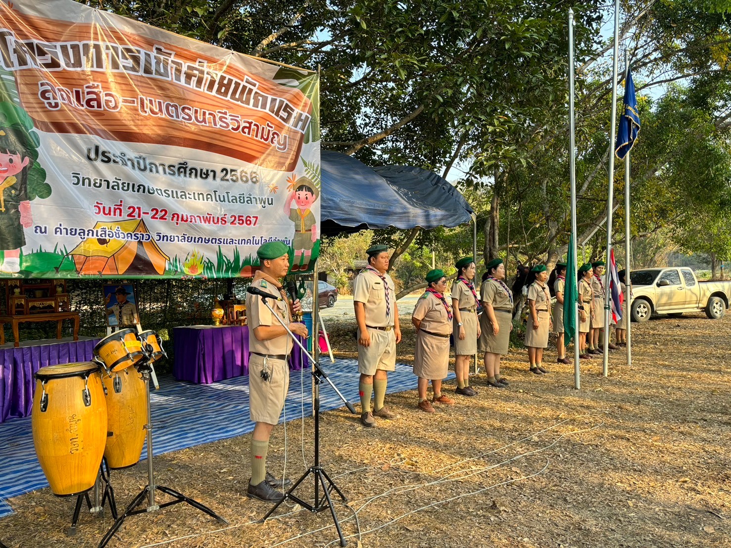 วันที่ 21-22 กุมภาพันธ์ 2567 ดร.จักรกฤษณ์ ทิพเลิศ ผู้อำนวยการวิทยาลัยเกษตรและเทคโนโลยีพูน พร้อมด้วยคณะผู้บริหาร คณะครู บุคลากรทางการศึกษา จัดกิจกรรมโครงการเข้าค่ายพักแรม ลูกเสือ – เนตรนารีวิสามัญ ประจำปีการศึกษา 2566 ณ ค่ายลูกเสือชั่วคราว วิทยาลัยเกษตรและเทคโนโลยีลำพูน