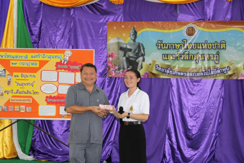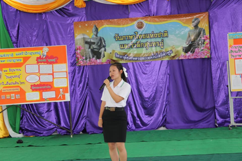 วันที่ 19 กรกฎาคม 2566 คณะผู้บริหาร คณะครู บุคลากร และนักเรียน นักศึกษา วิทยาลัยเกษตรและเทคโนโลยีลำพูน ร่วมกิจกรรม ‘วันภาษาไทยเทิดไท้สุนทรภู่’ โครงการวันภาษาไทยแห่งชาติและรำลึกสุนทรภู่ ปีการศึกษา 2566 โดยมีจุดประสงค์เพื่อเป็นการรักษาและอนุรักษ์ภาษาไทย เพื่อการฝึกทักษะทางด้านภาษาไทยให้กับเด็กสมัยใหม่ และเป็นการสนับสนุนให้นักเรียน นักศึกษาได้ตระหนักถึงความสำคัญและคุณค่าของภาษาไทย โดยได้รับเกียรติจากท่านผู้อำนวยการ นางสาวสุภัคคณิศร รุ่งเรือง เป็นประธานในพิธี ณ ชั้น 4 อาคาร Excellent center วิทยาลัยเกษตรและเทคโนโลยีลำพูน ดาวน์โหลดรูปภาพเพิ่มเติมได้ที่ https://drive.google.com/…/1J_A7z-mEOveAkgAlEs5HedW…