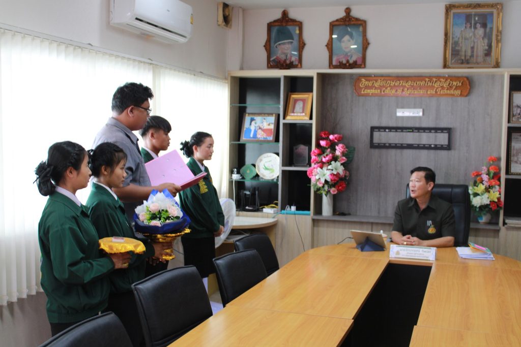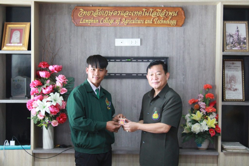 วันที่ 10 มกราคม 2567 เวลา 13.00 น. ดร.จักรกฤษณ์ ทิพเลิศ ผู้อำนวยการวิทยาลัยเกษตรและเทคโนโลยีลำพูน ได้รับการกล่าวรายงานผลการเลือกตั้ง นายก อกท.หน่วยลำพูน ประจำปีการศึกษา 2567 นำโดยนายสมพร ไขระวิ หัวหน้างานกิจกรรมนักเรียน นักศึกษา ครูผู้ช่วยครูที่ปรึกษาคณะกรรมการดำเนินงาน อกท.หน่วยลำพูน พร้อมนายก อกท.หน่วยลำพูนเเละคณะกรรมการดำเนินงาน อกท.หน่วยลำพูน และได้มอบมอบช่อดอกไม้เเละพระรอด รุ่น อกท.1 เพื่อเป็นของที่ระลึกให้เเก่ นายธรรมรักษ์ อ้นบำรุง ผู้ได้รับเลือกเป็นนายก อกท.หน่วยลำพูน ประจำปีการศึกษา 2567
