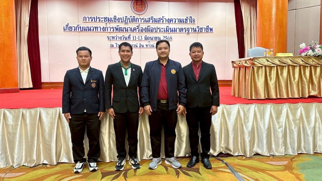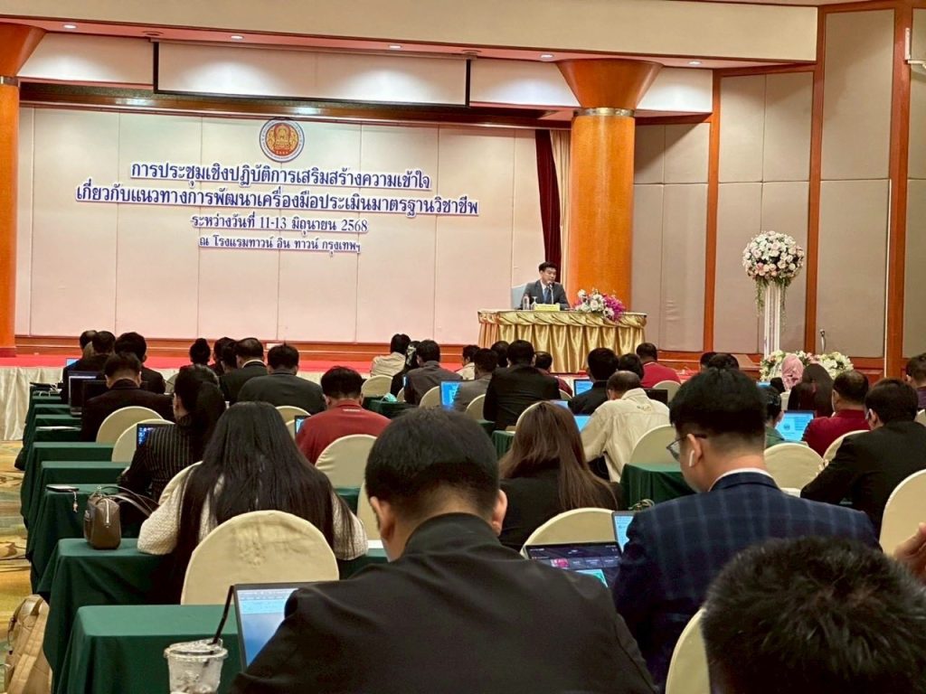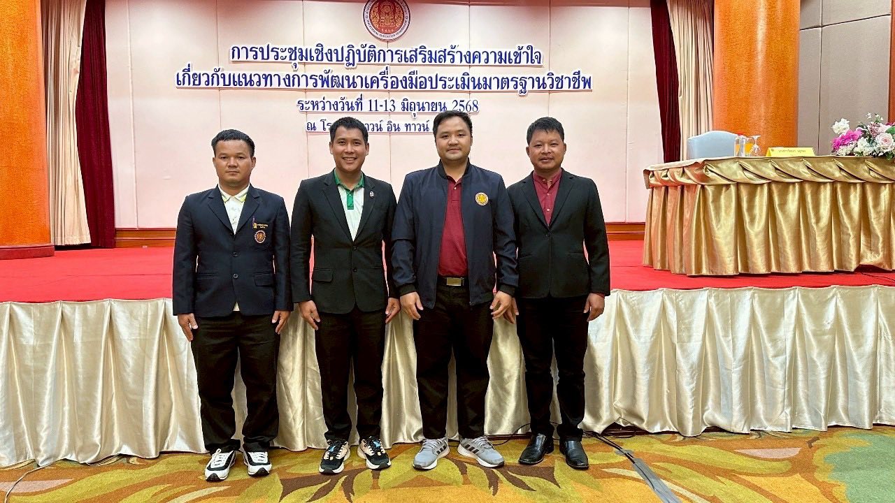 ระหว่างวันที่ 11-13 มิถุนายน 2568 ดร.ธีรวุธ ยะอูป ผู้อำนวยการวิทยาลัยเกษตรและเทคโนโลยีลำพูน ได้มอบหมายให้คณะครูเข้าร่วมการประชุมเชิงปฏิบัติการเสริมสร้างความเข้าใจเกี่ยวกับแนวทางการพัฒนาเครื่องมือประเมินมาตรฐานวิชาชีพ ณ โรงแรมทาวน์ อิน ทาวน์ กรุงเทพมหานคร