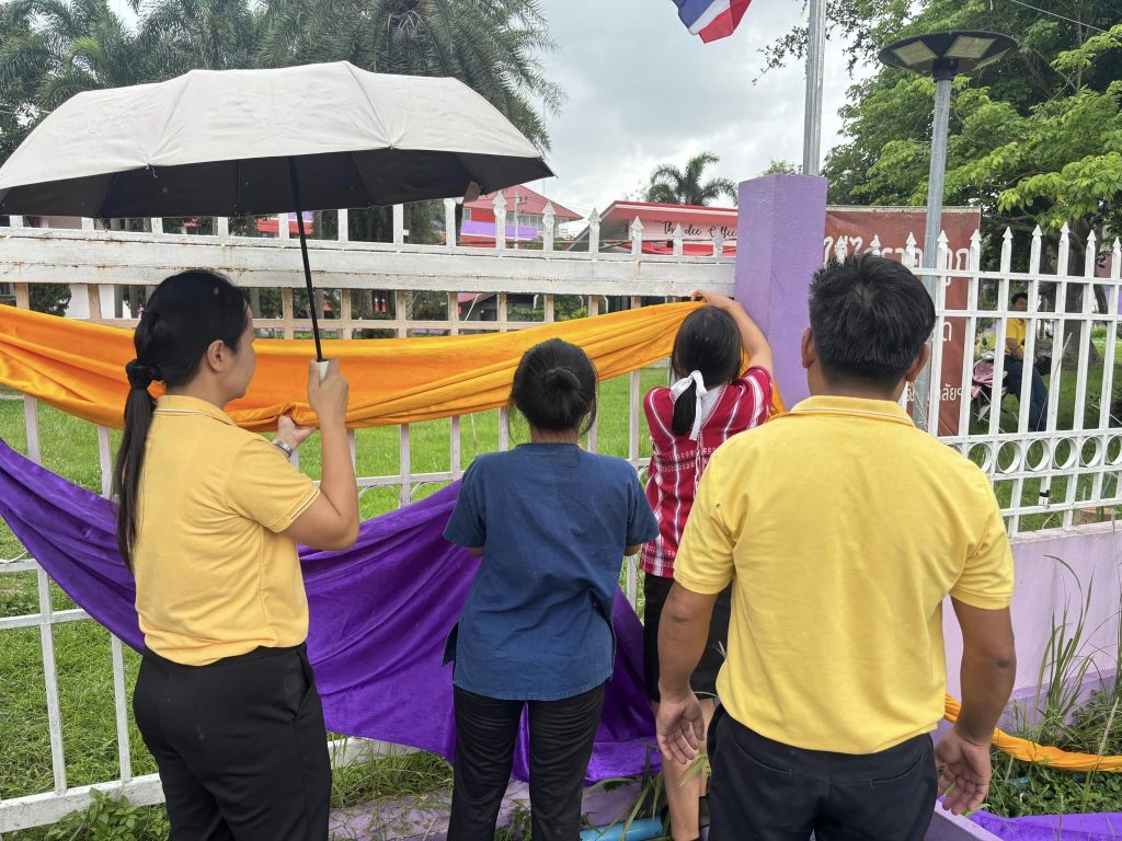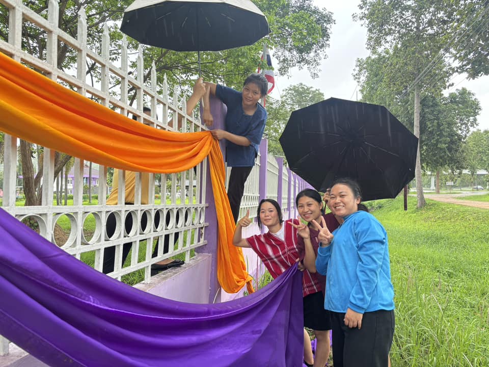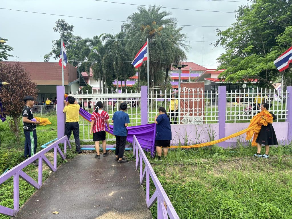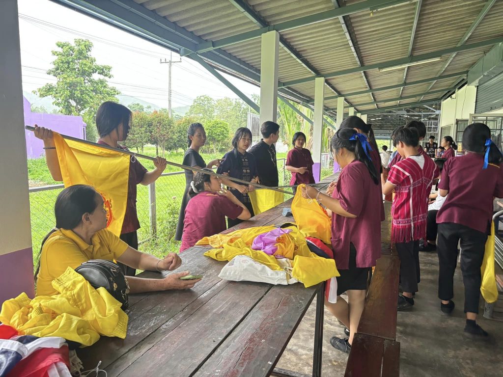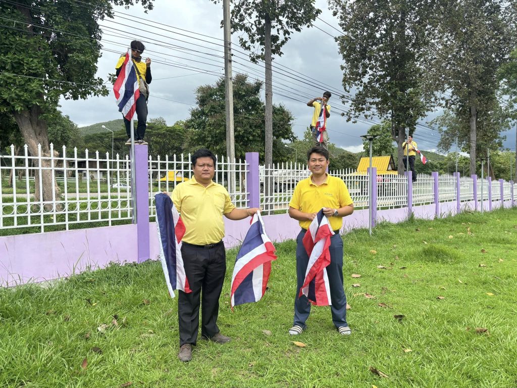 คณะครู บุคลากรทางการศึกษา เจ้าหน้าที่ และนักเรียน นักศึกษา ร่วมกิจกรรมจิตอาสา ตกแต่งประดับผ้า และธง บริเวณด้านหน้าวิทยาลัยเกษตรและเทคโนโลยีลำพูน