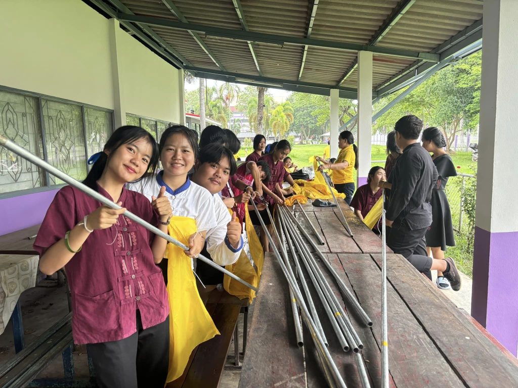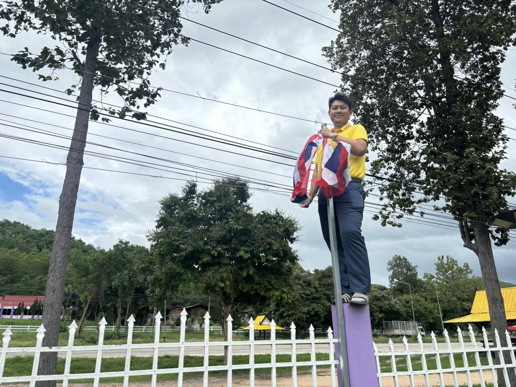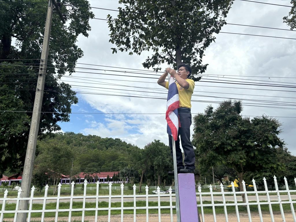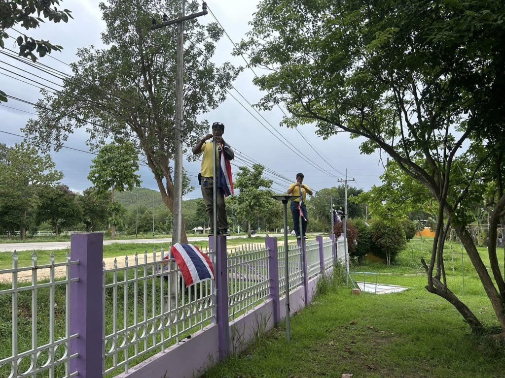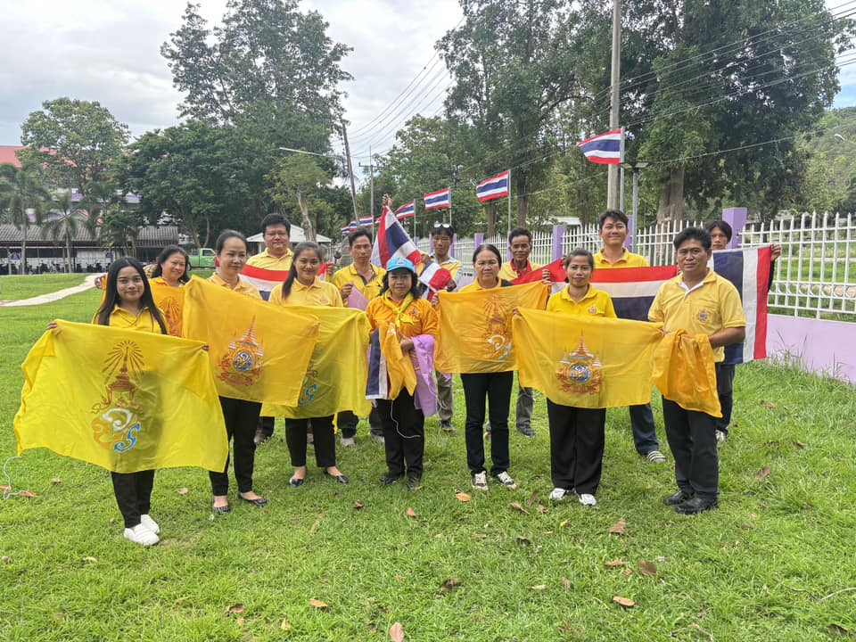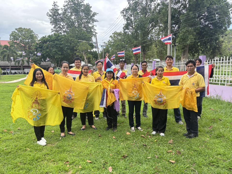 คณะครู บุคลากรทางการศึกษา เจ้าหน้าที่ และนักเรียน นักศึกษา ร่วมกิจกรรมจิตอาสา ตกแต่งประดับผ้า และธง บริเวณด้านหน้าวิทยาลัยเกษตรและเทคโนโลยีลำพูน