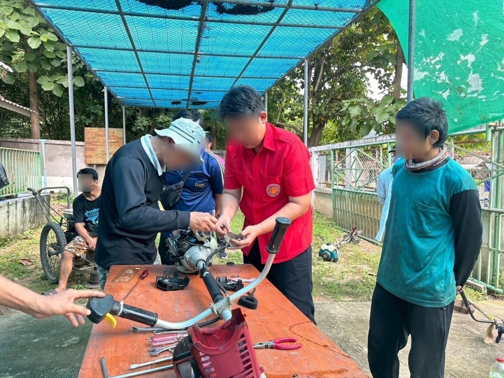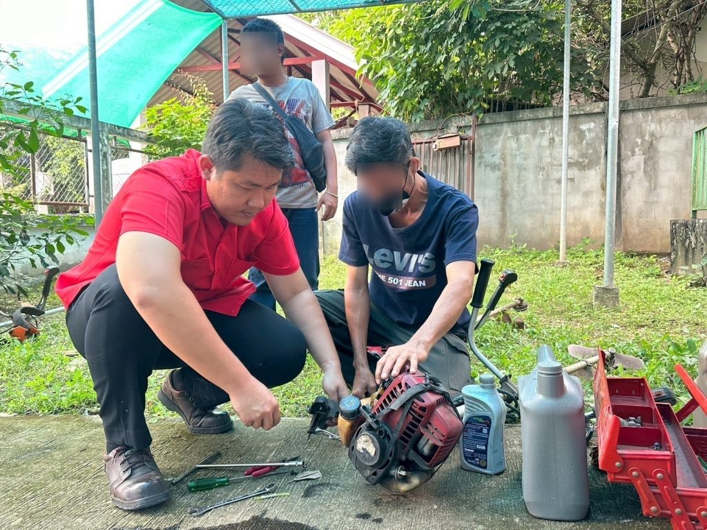ครูแผนกช่างกลเกษตร เป็นวิทยากรบรรยายและฝึกปฏิบัติ เรื่อง เครื่องยนต์เล็ก การซ่อมและวิธีดูแลรักษาเครื่องยนต์เล็ก (เครื่องตัดหญ้า) ในโครงการขับเคลื่อนการดำเนินงานศูนย์ประสานงานอาสาสมัครคุมประพฤติ