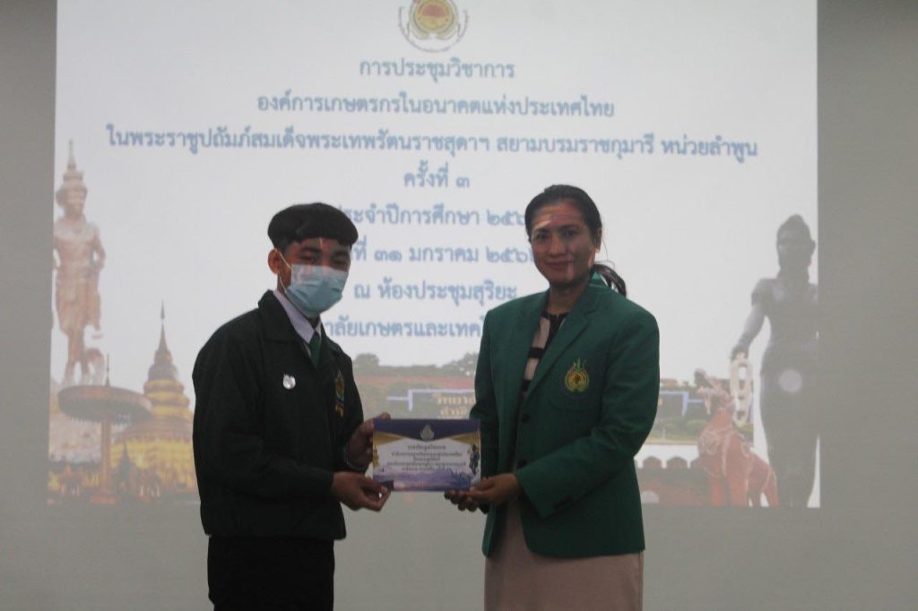 วันที่ 31 มกราคม 2566 นางสาวสุภัคคณิศร รุ่งเรือง ประธานอำนวยการ อกท.หน่วยลำพูน เป็นประธานในงานประชุมวิชาการ อกท.ระดับหน่วยครั้งที่ 3 การส่งมอบงาน และการปิดประชุมสมัยสามัญประจำปีการศึกษา 2565 และ การมอบเกียรติบัตรสมาชิกที่เข้าร่วมการแข่งขันทักษะในงาน ประชุมวิชาการ อกท.ระดับภาค ภาคเหนือ ครั้งที่ 43 มอบเข็มที่ระลึกพร้อมเกียรติบัตรสมาชิกเลือนระดับอกท.ระดับภาค ภาคเหนือ มอบเกียรติบัตร ครูผู้ฝึกซ้อมทักษะในงานอกท.ระดับภาค ภาคเหนือ ครั้งที่ 43 การส่งมอบงานของคณะกรรมการอกท.ปีการศึกษา 2565 ให้กับคณะกรรมการอกท.ปีการศึกษา 2566 การปิดประชุมสมัยสามัญของสมาชิกอกท.หน่วยลำพูน ประจำปีการศึกษา 2565 ณ ห้องประชุมสุริยะ วิทยาลัยเกษตรและเทคโนโลยีลำพูน cr.อกท.หน่วยลำพูน
