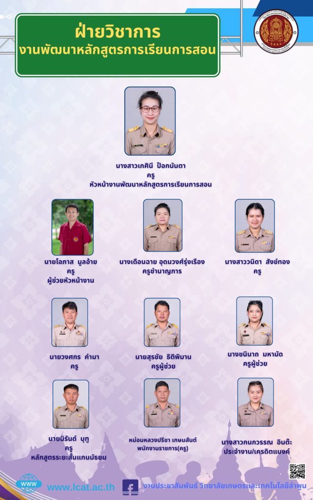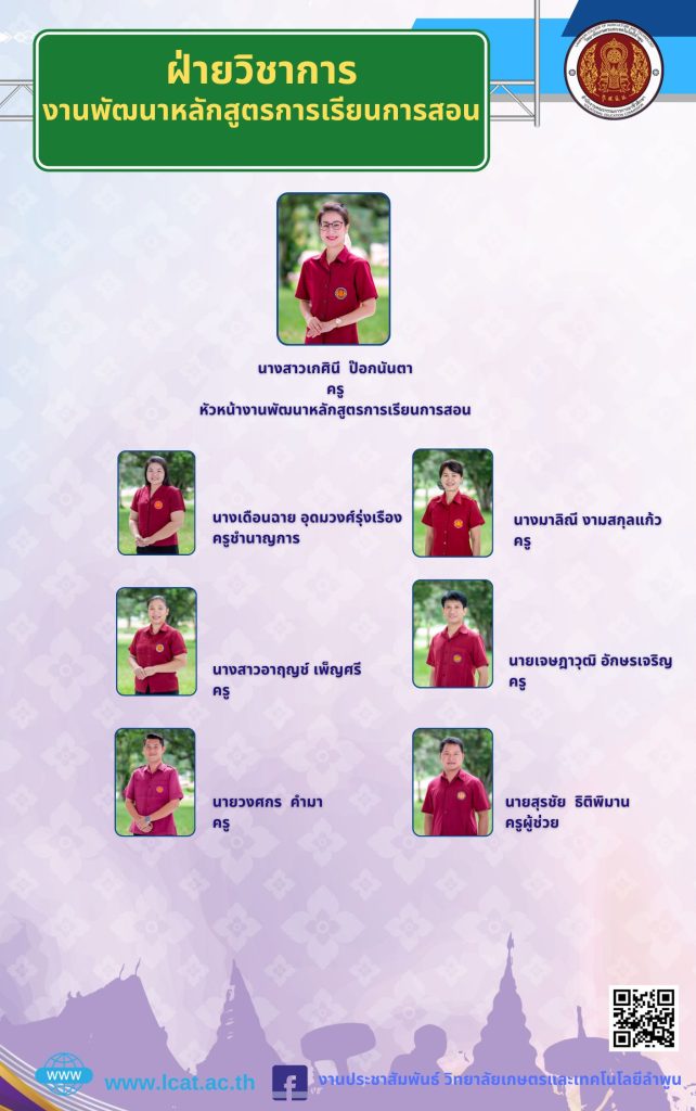 - จัดทำ รวบรวม และตรวจสอบแผนการเรียนของทุกแผนกวิชาให้ตรงกับโครงสร้างของหลักสูตร