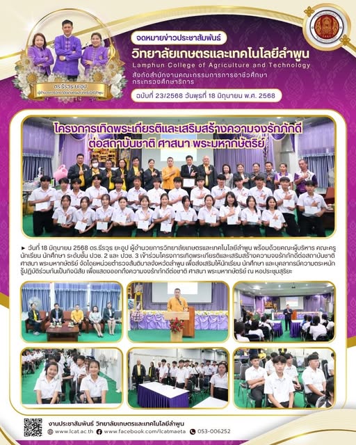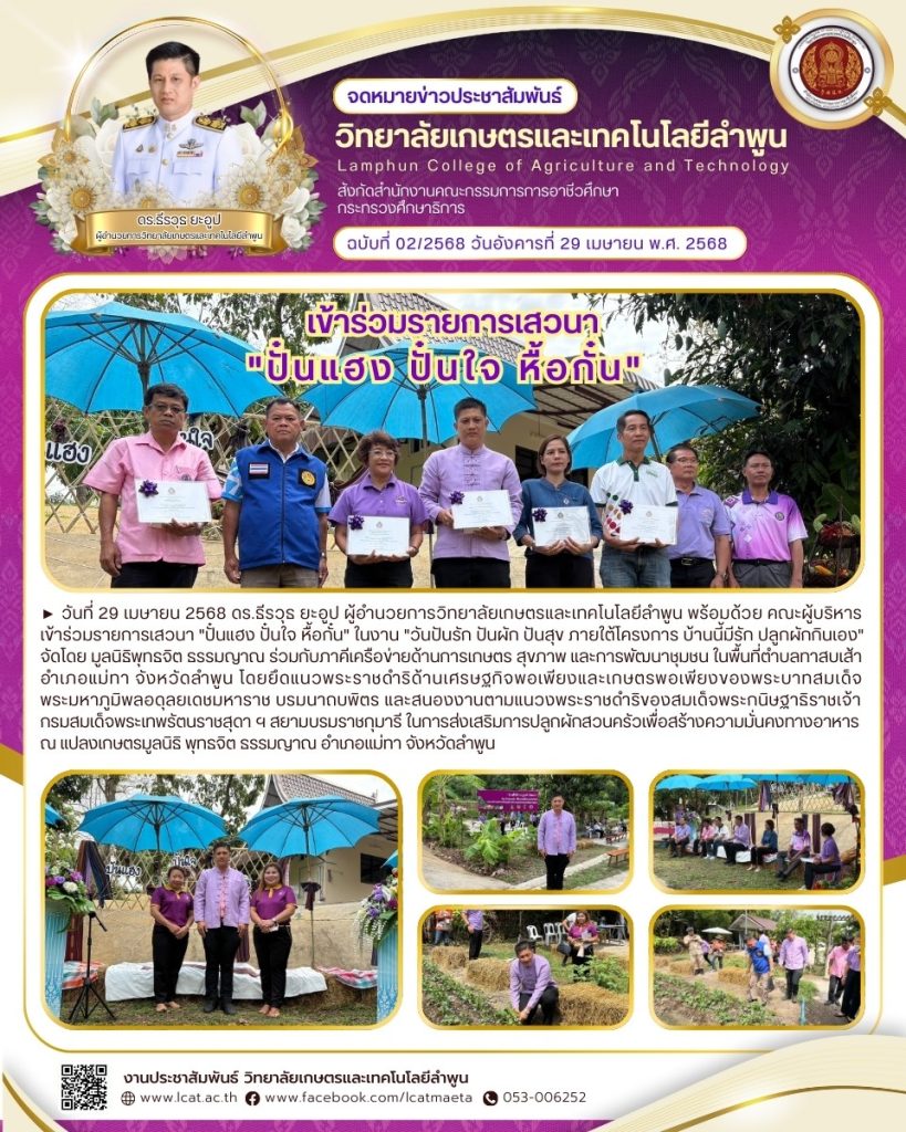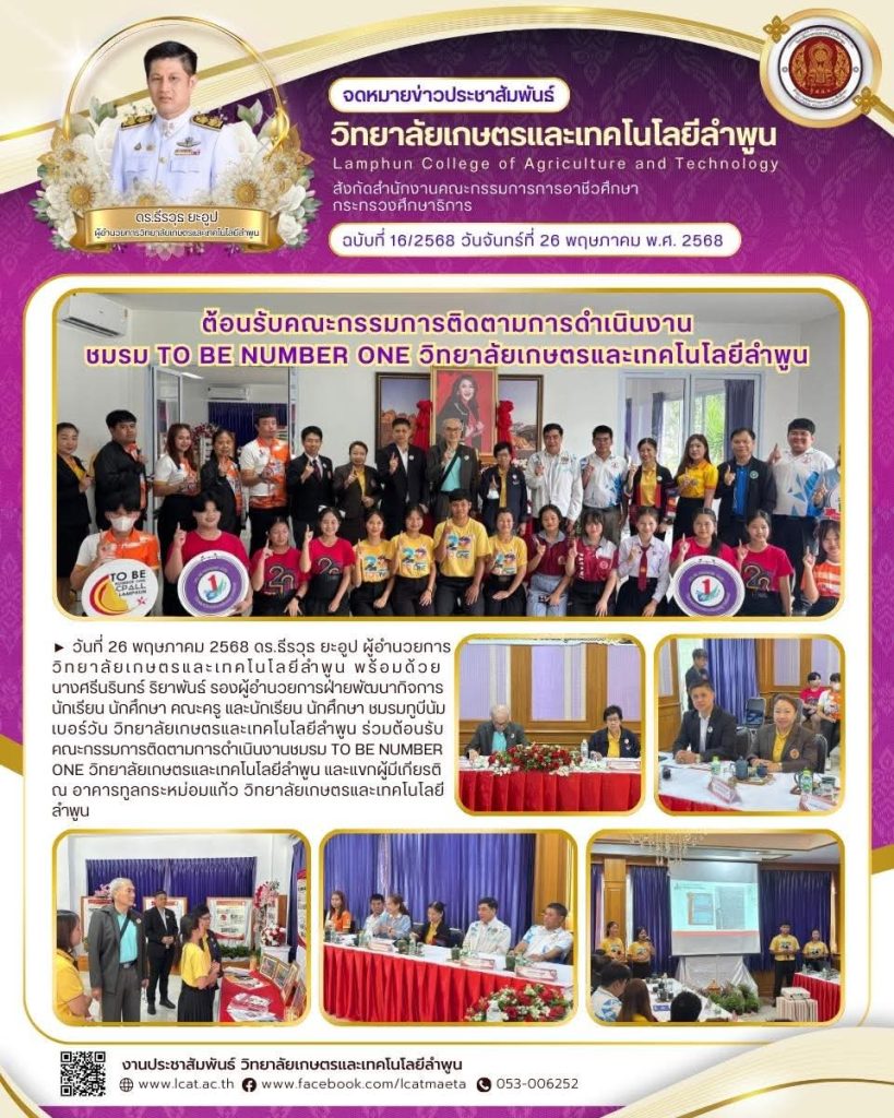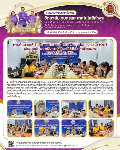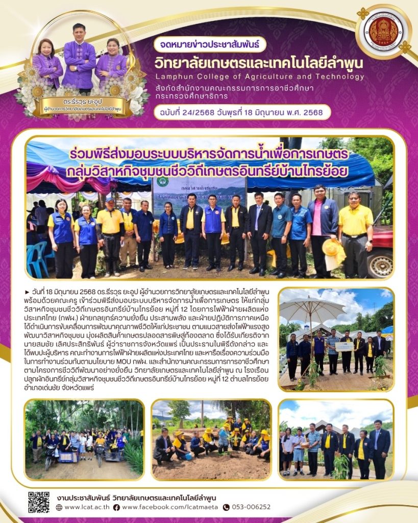 เรื่อง การต้อนรับทีมงานจากการไฟฟ้าฝ่ายผลิตแห่งประเทศไทย ลงพื้นที่ดูสถานที่ในการจัดนิทรรศการโครงการชีววิถีการพัฒนาอย่างยั่งยืน เพื่อวางแผน และจัดเตรียมการประชุมวิชาการ อกท.ระดับชาติ ครั้งที่ 44 ณ วิทยาลัยเกษตรและเทคโนโลยีลำพูน