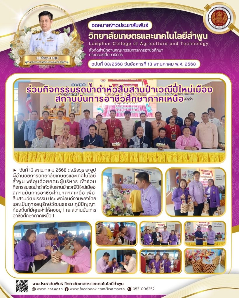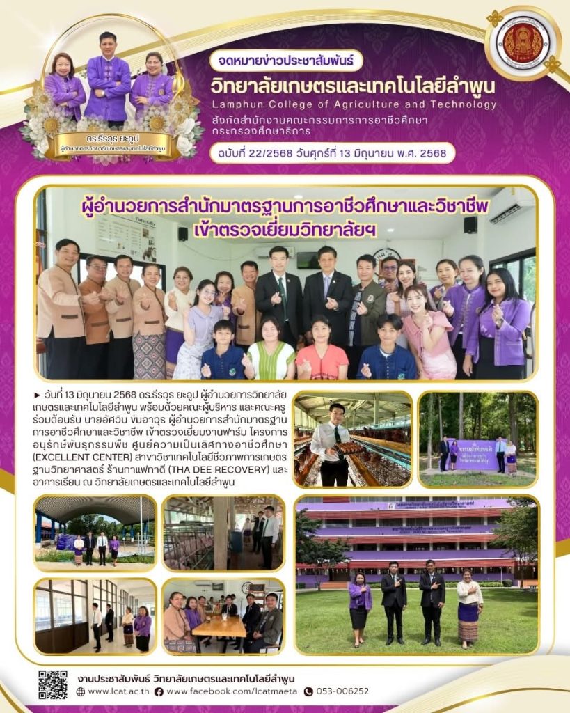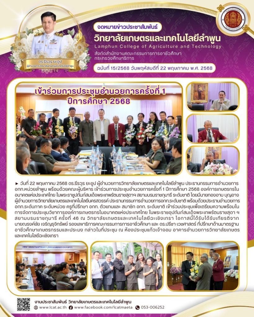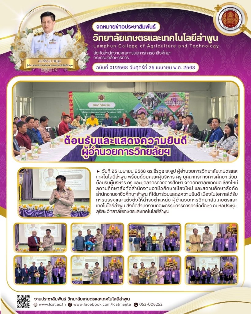 เรื่อง รองเลขาธิการคณะกรรมการการอาชีวศึกษามอบช่อดอกไม้แสดงความยินดีกับ ดร.จักรกฤษณ์ ทิพเลิศ ในโอกาสเข้ารับตำแหน่งผู้อำนวยการวิทยาลัยเกษตรและเทคโนโลยีลำพูน