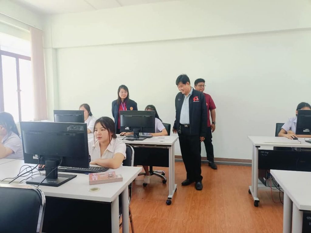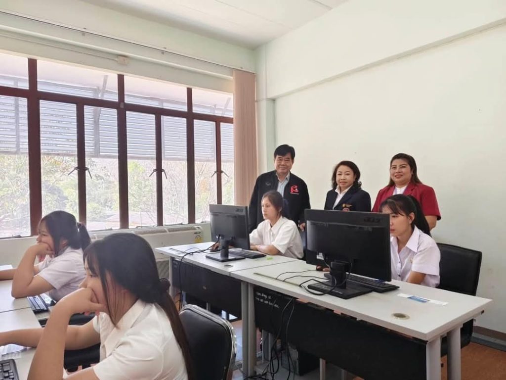 วันที่ 26 มกราคม 2568 นางศรีนรินทร์ ริยาพันธ์ รองผู้อำนวยการ รักษาการในตำแหน่งผู้อำนวยการวิทยาลัยเกษตรและเทคโนโลยีลำพูน พร้อมด้วยคณะผู้บริหาร คณะกรรมการระดับสนามสอบ จัดการทดสอบทางการศึกษาระดับชาติด้านอาชีวศึกษา (V-NET) ด้วยระบบดิจิทัล (Digital Testing) ปีการศึกษา 2567 เป็นการวัดความรู้และความคิดของนักเรียนในระดับประกาศนียบัตรวิชาชีพชั้นปีที่ 3 (ปวช. 3) โดยมี นายแสวง ทาวดี รองผู้อำนวยการสถาบันการอาชีวศึกษาภาคเหนือ 1 เข้าตรวจเยี่ยมและให้กำลังใจนักเรียน ณ ห้องปฏิบัติการคอมพิวเตอร์ วิทยาลัยเกษตรและเทคโนโลยีลำพูน