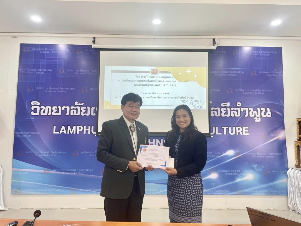 16 มีนาคม 2566 วิทยาลัยเกษตรและเทคโนโลยีลำพูน โดยงานประกันคุณภาพและมาตรฐานการศึกษา ฝ่ายแผนงานและความร่วมมือ จัดการฝึกอบรมเชิงปฏิบัติการ การประกันคุณภาพสถานศึกษา เพื่อยกระดับคุณภาพสถานศึกษา ตามมาตรฐานอาชีวศึกษา พุทธศักราช 2561 และกรอบประกันคุณภาพภายนอกสถานศึกษา ด้านอาชีวศึกษา ให้กับครู บุคลากร เจ้าหน้าที่ โดยได้รับเกียรติจากผู้ทรงคุณวุฒิ นายแสวง ทาวดี เป็นวิทยากรในการอบรมให้ความรู้ ณ ห้องประชุมเมืองสุวรรณ วิทยาลัยเกษตรและเทคโนโลยีลำพูน