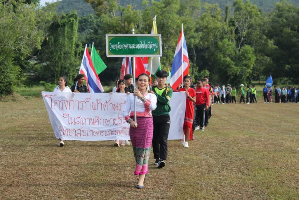 วันที่ 17 สิงหาคม 2566 วิทยาลัยเกษตรและเทคโนโลยีลำพูน จัดโครงการแข่งขันกีฬาต้านยาเสพติดภายในสถานศึกษา ประจำปีการศึกษา 2566 โดยคณะครู บุคลากร และนักเรียนนักศึกษา ร่วมตั้งขบวนพาเหรดสี พร้อมด้วยผู้ถือป้ายและธงประจำสี โดยได้รับเกียรติจากนางสาวสุภัคคณิศร รุ่งเรือง ผู้อำนวยการวิทยาลัยเกษตรและเทคโนโลยีลำพูนเป็นประธานในพิธี และนางจุฬาลักษณ์ โคบายาชิ รองผู้อำนวยการฝ่ายพัฒนากิจการนักเรียน นักศึกษา เป็นผู้กล่าวรายงานต่อท่านประธานในพิธี ภายในงานประกอบด้วยกิจกรรมกีฬาสนุกๆ มากมาย ได้แก่ วอลเลย์บอล ตะกร้อ ปิงปอง กรีฑา กีฬาพื้นบ้าน ที่นักเรียน นักศึกษา คณะครู และบุคลากรได้ร่วมสนุก และสานสัมพันธ์ร่วมกัน