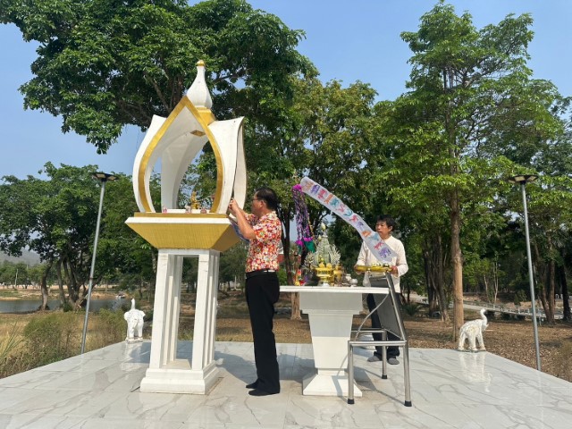 คณะผู้บริหาร ครู บุคลากรทางการศึกษา วิทยาลัยเกษตรและเทคโนโลยีลำพูน ร่วมสักการะสิ่งศักดิ์สิทธิ์ ประจำวิทยาลัย