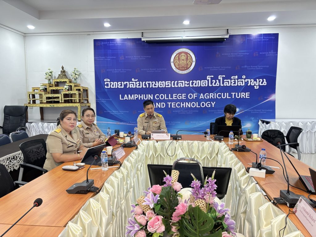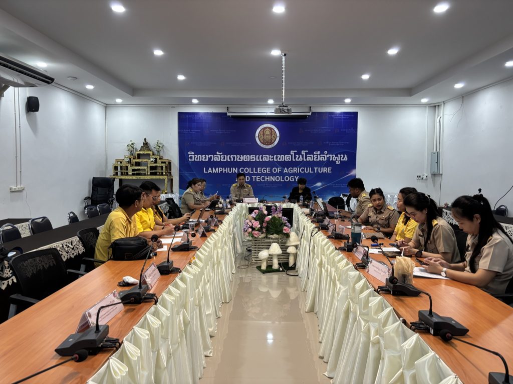 วันที่ 7 กรกฎาคม 2568 ดร.ธีรวุธ ยะอูป ผู้อำนวยการวิทยาลัยเกษตรและเทคโนโลยีลำพูน พร้อมด้วยคณะผู้บริหาร คณะกรรมการดำเนินงานติดตามเพื่อขับเคลื่อนสถานศึกษาและความโปร่งใสในการดำเนินงานของสถานศึกษา (Integrity and Transparency Assessment : ITA) ประจำปีงบประมาณ พ.ศ.2568 เข้าต้อนรับ นางพันธ์ทวี สหะรัตน์ รองผู้อำนวยการสถาบันการอาชีวศึกษาเกษตรภาคเหนือ และรับฟังการติดตามให้คำปรึกษาในการเปิดเผยข้อมูลต่อสาธารณะ (OIT) ภายใต้โครงการเสริมสร้างคุณธรรม จริยธรรม และธรรมาภิบาลในสถานศึกษา ณ ห้องประชุมเมืองสุวรรณ วิทยาลัยเกษตรและเทคโนโลยีลำพูน