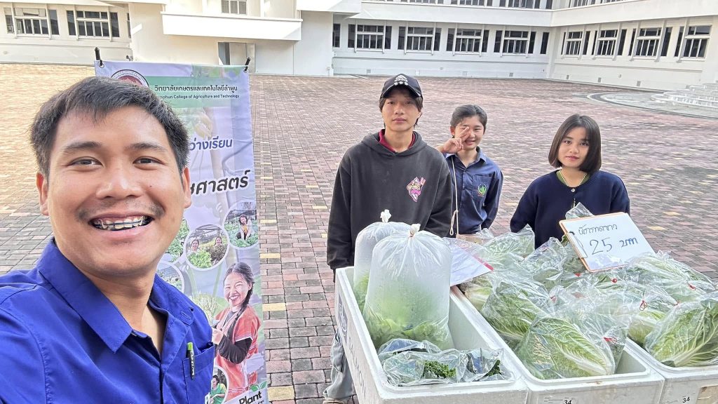 นักเรียน นักศึกษาแผนกวิชาพืชศาสตร์ วิทยาลัยเกษตรและเทคโนโลยีลำพูน ได้จัดทำโครงการหารายได้ระหว่างเรียน ร่วมเปิดตลาดเกษตรลำพูน ณ ศาลากลางจังหวัดลำพูน