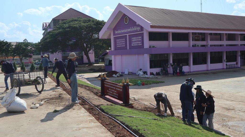 นับถอยหลัง อกท.ชาติ 17 วัน ดร.จักรกฤษณ์ ทิพเลิศ ผู้อำนวยการวิทยาลัยเกษตรและเทคโนโลยีลำพูน คณะผู้บริหาร ครู บุคลากรทางการศึกษา และนักเรียน นักศึกษา โดยได้รับความอนุเคราะห์จากหน่วยงานส่วนส่วนภูมิภาค และท้องถิ่น องค์การบริหารส่วนจังหวัดลำพูน เทศบาลตำบลทาสบเส้า และสมาชิก อกท.หน่วยเชียงใหม่ วิทยาลัยการอาชีพจอมทอง และศิษย์เก่าวิทยาลัยเกษตรและเทคโนโลยีลำพูน นำโดยนายเศรษฐา ทวีกุล ประธานชมรมศิษย์เก่าวิทยาลัยฯ ร่วมกันพัฒนาพื้นที่บริเวณวิทยาลัย การปรับพื้นที่ การจัดสวนดอกไม้ การปรับปรุงภูมิทัศน์ การต่อระบบไฟฟ้า การตกแต่งลานวัฒนธรรมล้านนา การทาสีอาคาร และด้านอื่นๆ เพื่อเตรียมงาน การประชุมวิชาการองค์การเกษตรกรอนาคตแห่งประเทศไทย ระดับชาติ ครั้งที่ 44 ระหว่างวันที่ 24 – 28 มกราคม 2567 ณ วิทยาลัยเกษตรเทคโนโลยีลำพูน