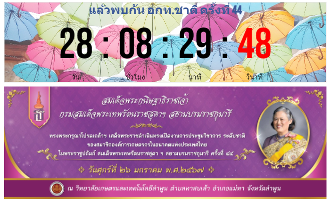 นับถอยหลัง อกท.ชาติ 28 เพื่อเตรียมงาน การประชุมวิชาการองค์การเกษตรกรอนาคตแห่งประเทศไทย ระดับชาติ ครั้งที่ 44