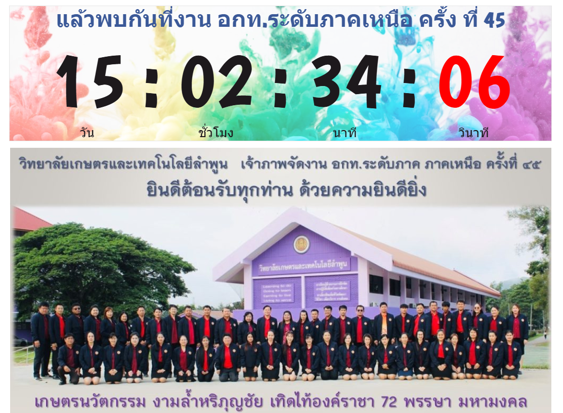 นับถอยหลัง อกท.ภาคเหนือ 15 วัน งานการประชุมวิชาการองค์การเกษตรกรอนาคตแห่งประเทศไทย ในพระราชูปถัมภ์สมเด็จพระเทพรัตนราชสุดาฯ สยามบรมราชกุมารี (อกท.) ระดับภาคเหนือ ครั้งที่ 45