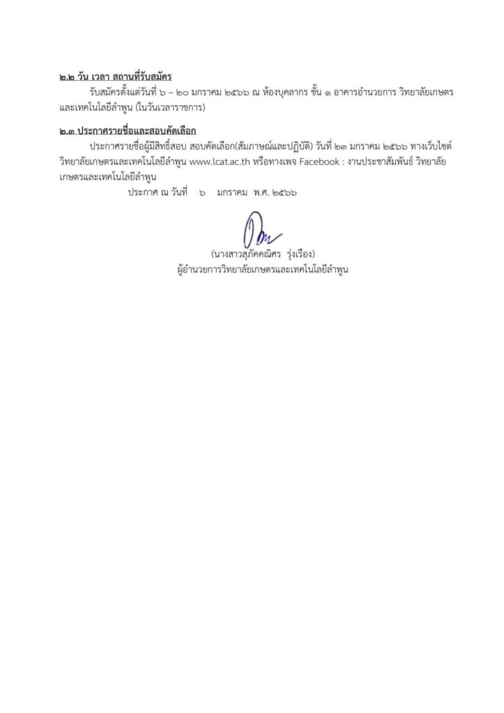 รับสมัครตั้งแต่วันนี้ – วันที่ 20 มกราคม 2566 ณ ห้องบุคลากร ชั้น 1 อาคารอำนวยการ วิทยาลัยเกษตรและเทคโนโลยีลำพูน (วันเวลาราชการ)