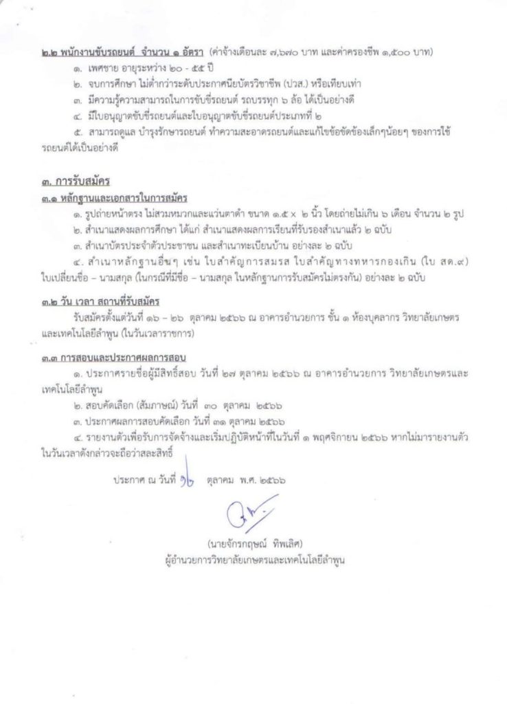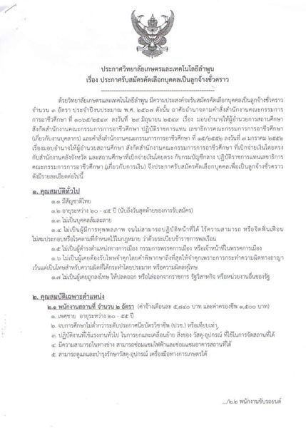 ประกาศวิทยาลัยเกษตรและเทคโนโลยีลำพูน รับสมัครคัดเลือกบุคคลเป็นลูกจ้างชั่วคราว จำนวน 3 ตำแหน่ง