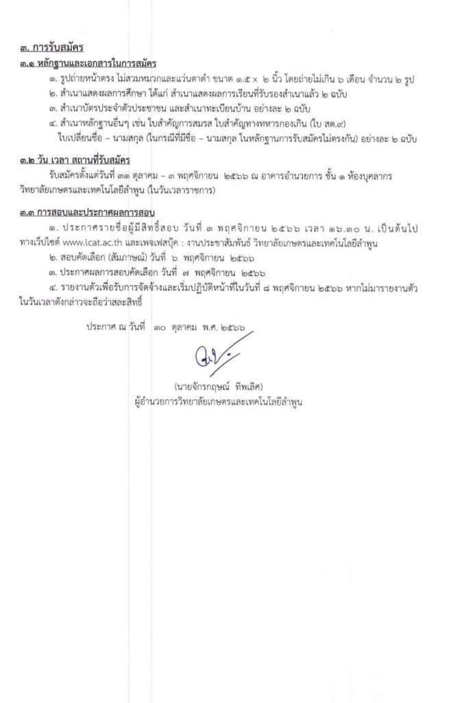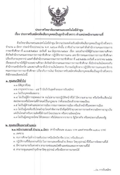 ประกาศวิทยาลัยเกษตรและเทคโนโลยีลำพูน รับสมัครคัดเลือกบุคคลเป็นลูกจ้างชั่วคราว จำนวน 1 ตำแหน่ง