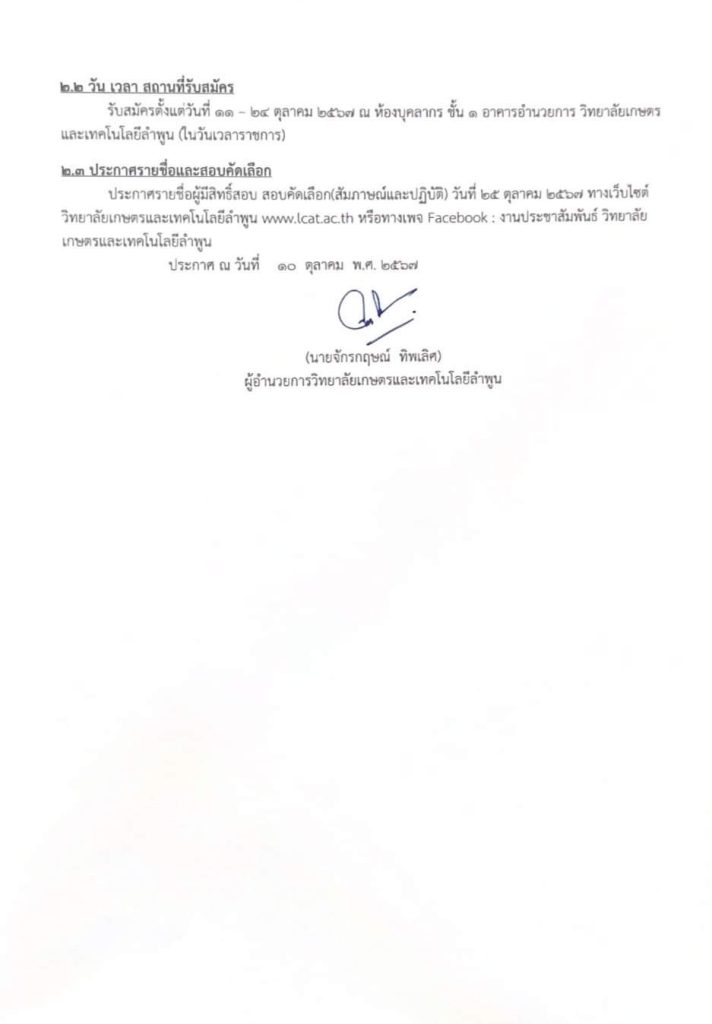 ประกาศวิทยาลัยเกษตรและเทคโนโลยีลำพูน