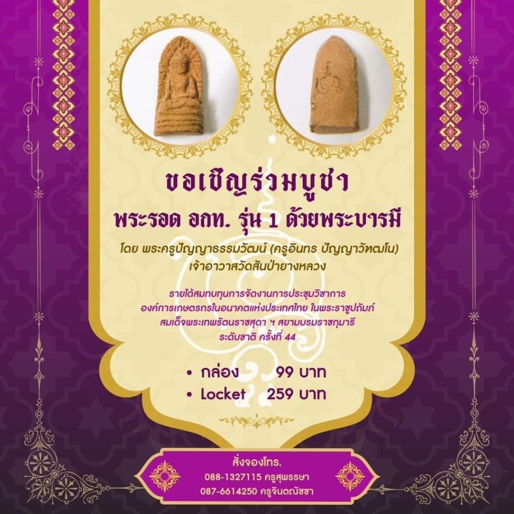 ประชาสัมพันธ์เชิญชวนร่วมบูชา “พระรอด อกท. รุ่น 1 ด้วยพระบารมี”