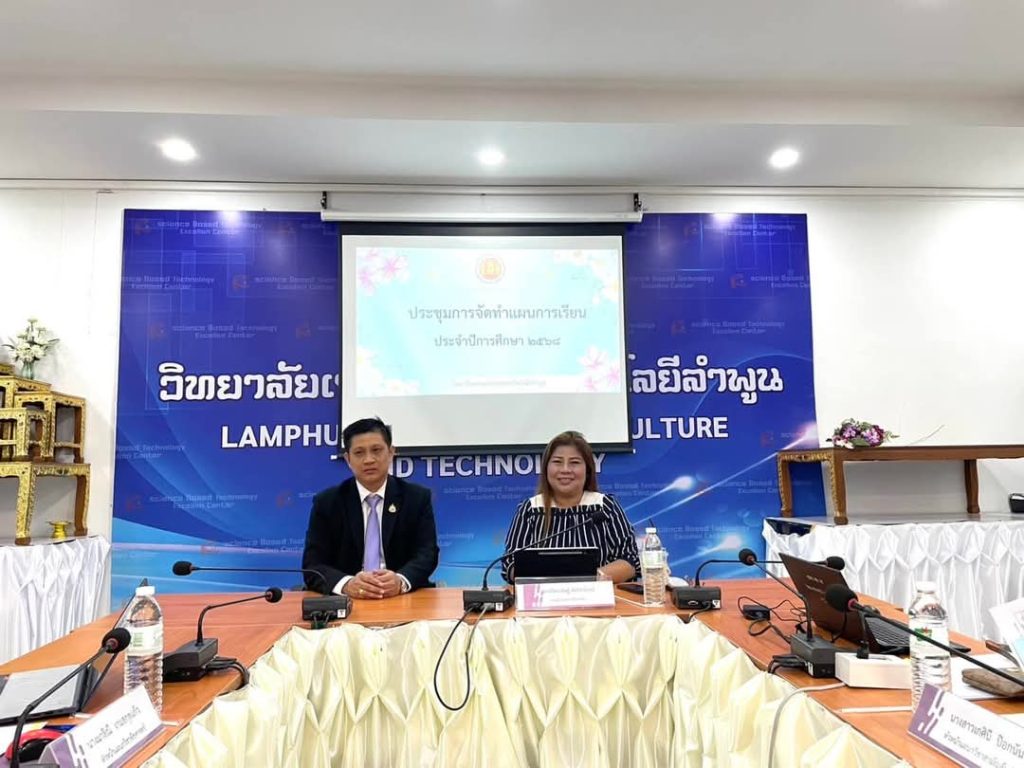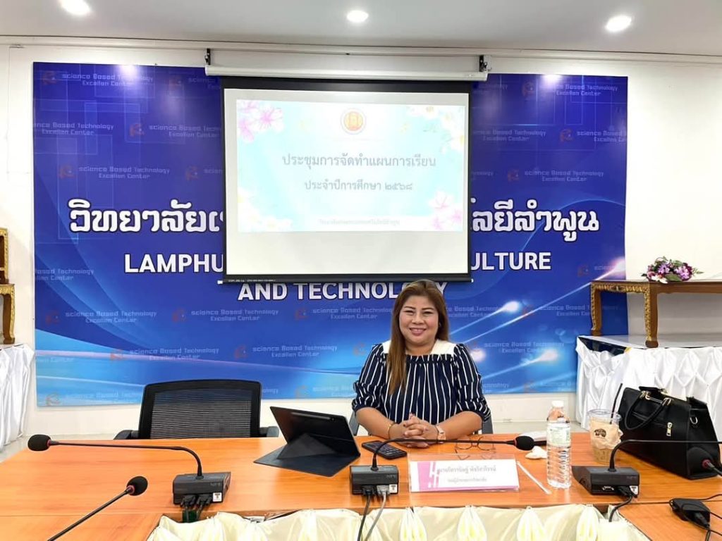 วันที่ 13 มีนาคม 2568 นางศรีนรินทร์ ริยาพันธ์ รองผู้อำนวยการวิทยาลัยรักษาการในตำแหน่ง ผู้อำนวยการวิทยาลัยเกษตรและเทคโนโลยีลำพูน มอบหมายให้ นางภัทรานิษฐ์ พัชริศวโรจน์ รองผู้อำนวยการฝ่ายวิชาการ และหัวหน้าแผนกวิชา เข้าร่วมประชุมการจัดแผนการเรียน ปีการศึกษา 2568 ณ ห้องประชุมเมืองสุวรรณ วิทยาลัยเกษตรและเทคโนโลยีลำพูน