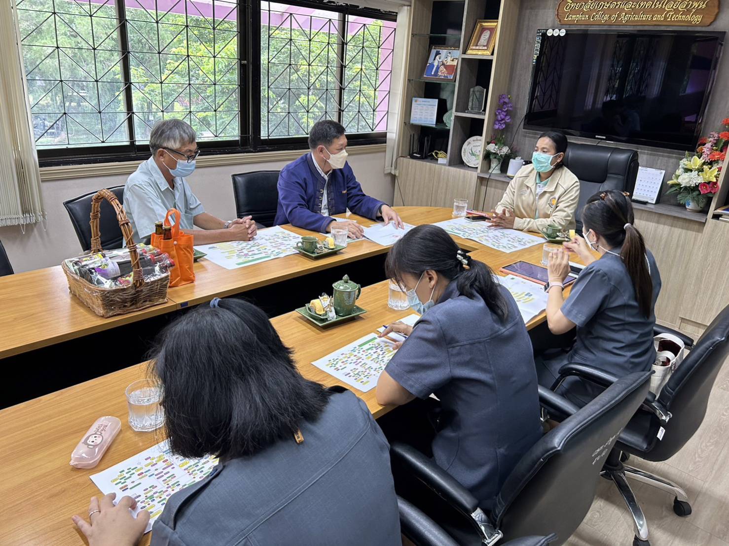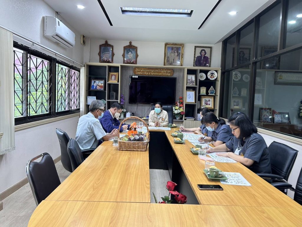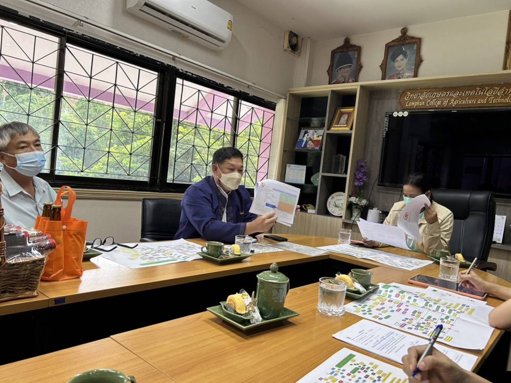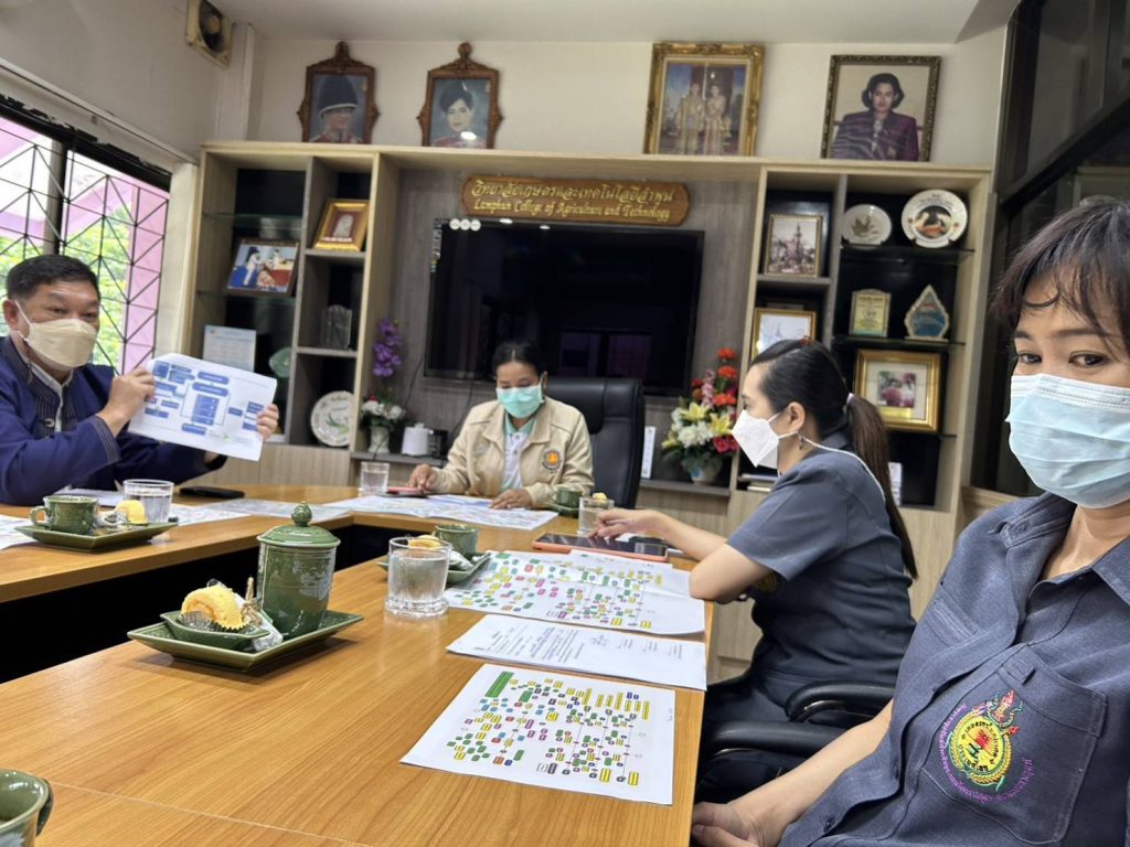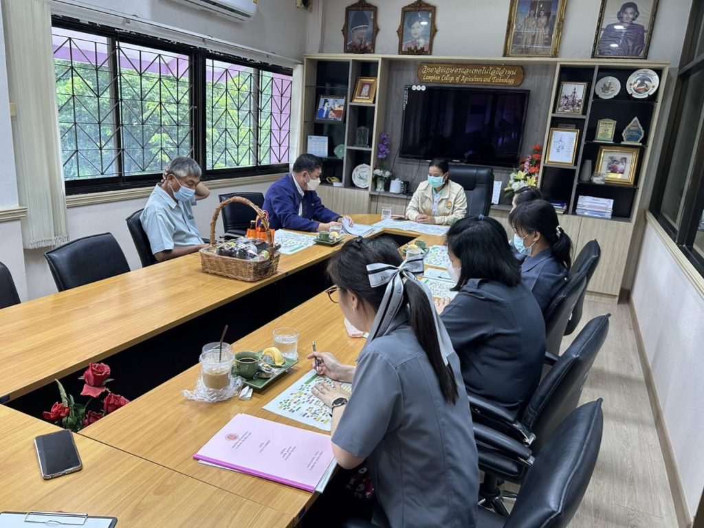 วันที่ 7 มิถุนายน 2566 นางสาวสุภัคคณิศร รุ่งเรือง ผู้อำนวยการวิทยาลัยเกษตรและเทคโนโลยีลำพูนร่วมกับฝ่ายวิชาการ และหัวหน้าแผนกวิชา ร่วมประชุมเพื่อพิจารณา (ร่าง) บันทึกข้อตกลงความร่วมมือและจัดทำแผนปฏิบัติการ action plan ร่วมกับ ผศ.ดร.อภิชาติ ชิดบุรี และอาจารย์พิทักษ์ พุทธวรชัย จากมหาวิทยาลัยเทคโนโลยีราชมงคลล้านนาลำปาง ในการจัดทำแผนเพื่อพัฒนาต่อยอดจากฟาร์มเดิมที่มีอยู่ในสถานศึกษามีการพัฒนาต่อยอดและเริ่มกระบวนการตั้งแต่ต้นน้ำกลางน้ำปลายน้ำทุกแผนกวิชามีส่วนร่วมในการพัฒนางานฟาร์มของสถานศึกษา