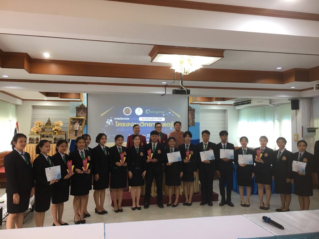 ผลการแข่งขันโครงงานวิทยาศาสตร์ ระดับปวส เรื่องการผลิตไข่ผำไฮโดรไลเสตด้วยกระบวนการ Acid Hydrolysis เพื่อพัฒนาเป็นผลิตภัณฑ์ THA DEE HAIR TONIC SPRAY ได้รับรางวัลชนะเลิศ ระดับเหรียญทอง