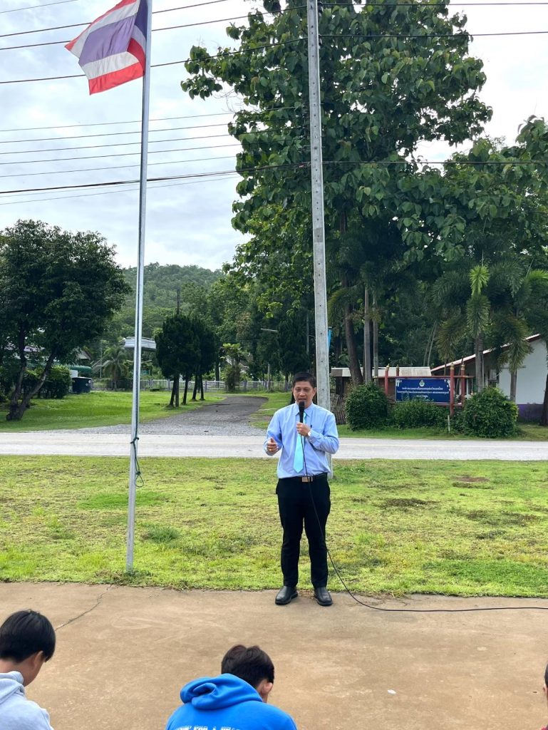 ผู้อำนวยการวิทยาลัยเกษตรและเทคโนโลยีลำพูน และ ครูแผนกวิชาธุรกิจเกษตร กล่าวให้โอวาทและแจ้งข้อมูลข่าวสารแก่นักเรียนนักศึกษา กิจกรรมเคารพธงชาติ