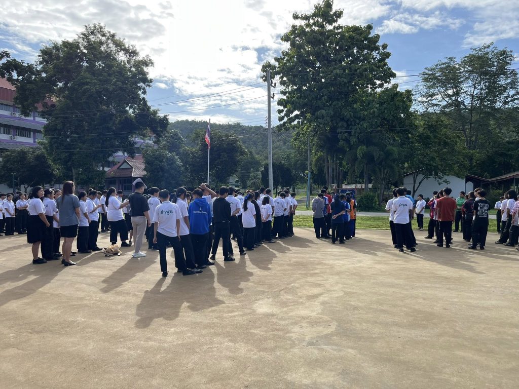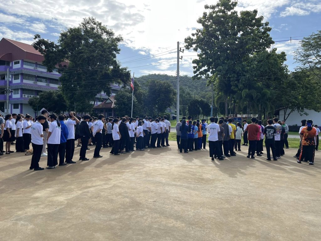 กล่าวให้โอวาทและแจ้งข้อมูลข่าวสารแก่นักเรียนนักศึกษา กิจกรรมเคารพธงชาติ