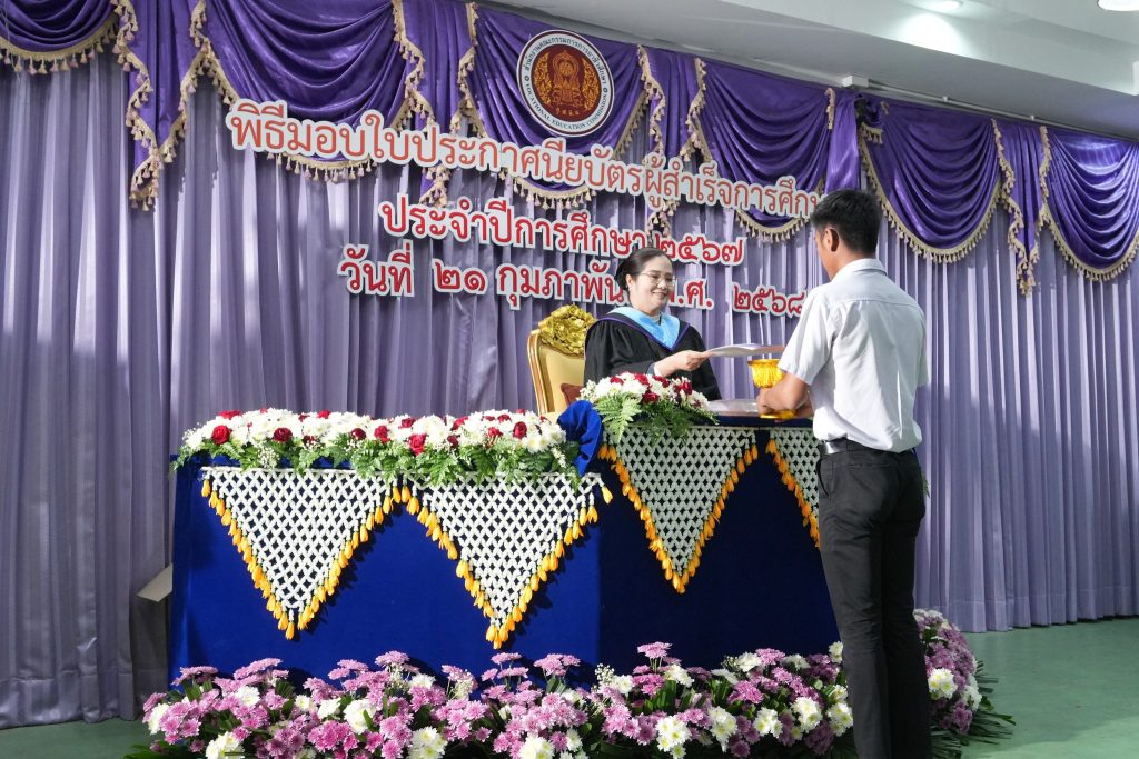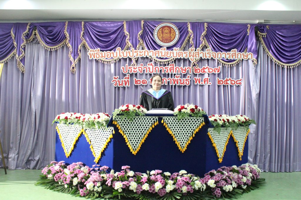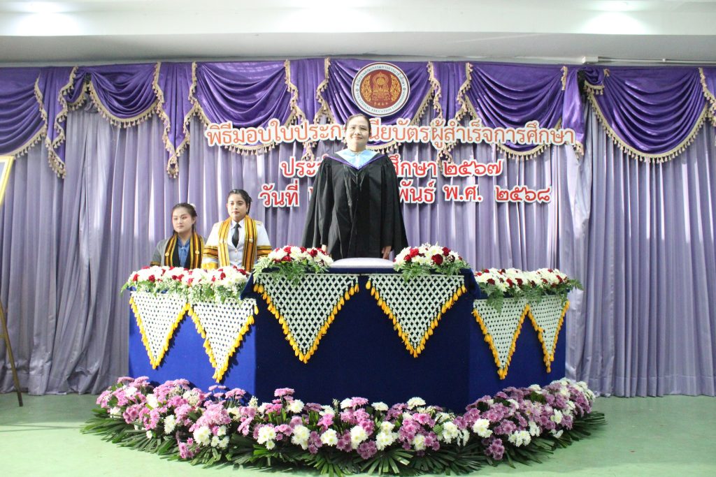 พิธีมอบประกาศนียบัตร ผู้สำเร็จการศึกษา ประจำปีการศึกษา 2567 โดยมีนางรุ่งทิพย์ ทาวดี ศึกษาธิการจังหวัดลำพูน ให้เกียรติเป็นประธานในพิธีและมอบเกียรติบัตรให้แก่ผู้สำเร็จการศึกษา
