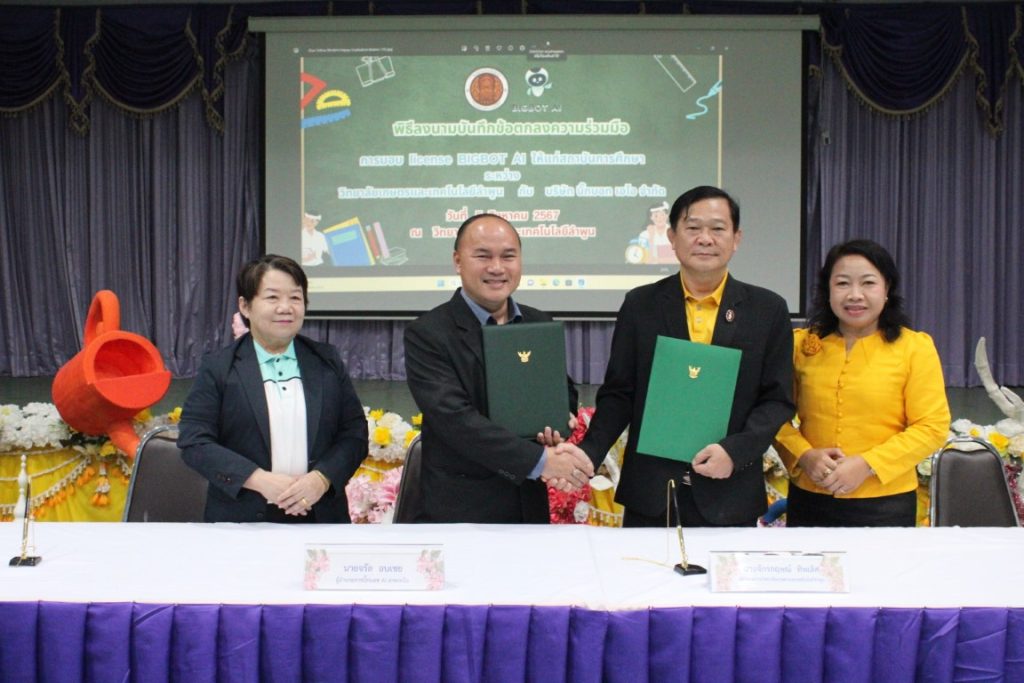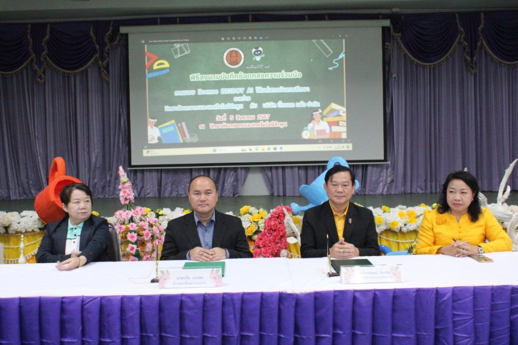 พิธีลงนามบันทึกข้อตกลงความร่วมมือการมอบ license BIGBOT AI ใและเข้ารับการอบรมการใช้งานและนำเทคโนโลยีปัญญาประดิษฐ์ (AI) เพื่อการพัฒนางานวิชาการ สื่อการสอน และวิจัยในยุคดิจิทัล