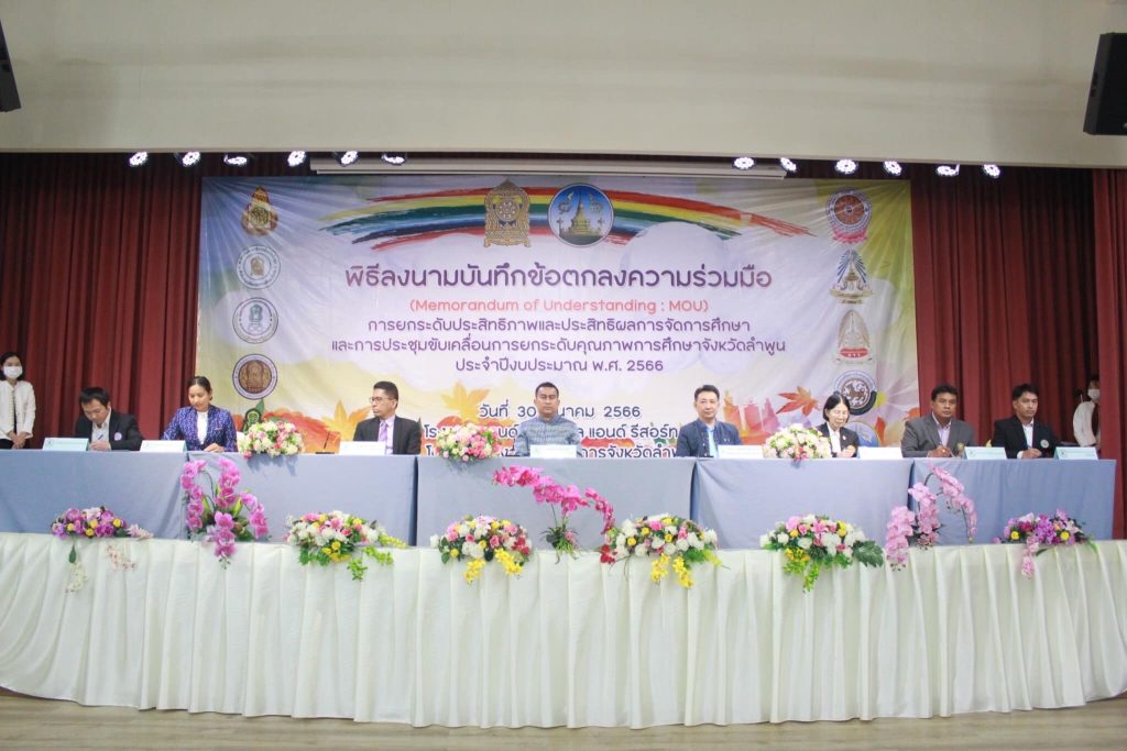 พิธีลงนามบันทึกข้อตกลงความร่วมมือ (MOU) การยกระดับประสิทธิภาพและประสิทธิผลการจัดการศึกษา และการประชุมขับเคลื่อนการยกระดับคุณภาพการจัดการศึกษาจังหวัดลำพูน ประจำปีงบประมาณ พ.ศ. 2566