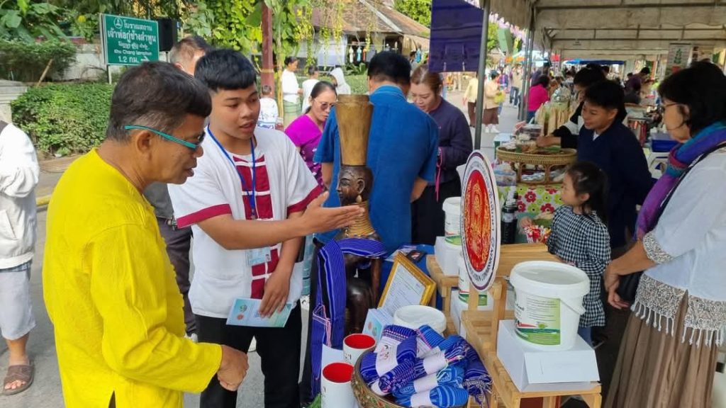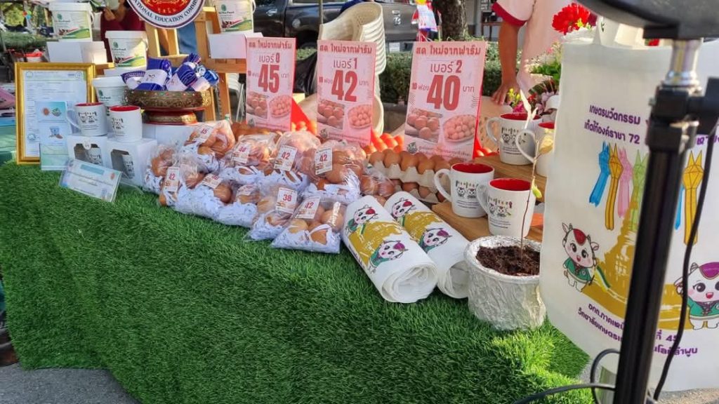 วันที่ 12 มกราคม 2568 ศูนย์บ่มเพาะผู้ประกอบการอาชีวศึกษาวิทยาลัยเกษตรและเทคโนโลยีลำพูน ภายใต้งานส่งเสริมผลผลิตการค้า และประกอบธุรกิจ และฝ่ายแผนงานและความร่วมมือ เข้าร่วมจัดแสดงผลงานทางวิชาการ จากนักศึกษา ระดับชั้น ปวช.2 สาขาเทคโนโลยีชีวภาพการเกษตร และจัดจำหน่ายสินค้า (ผลิตภัณฑ์ไข่ไก่) จากงานฟาร์ม ในงานบุญตานข้าวใหม่ ปู๋จาพระธาตุเจ้าหริภัญชัย ณ ลานวัดพระธาตุหริภุญชัย วรมหาวิหาร จังหวัดลำพูน
