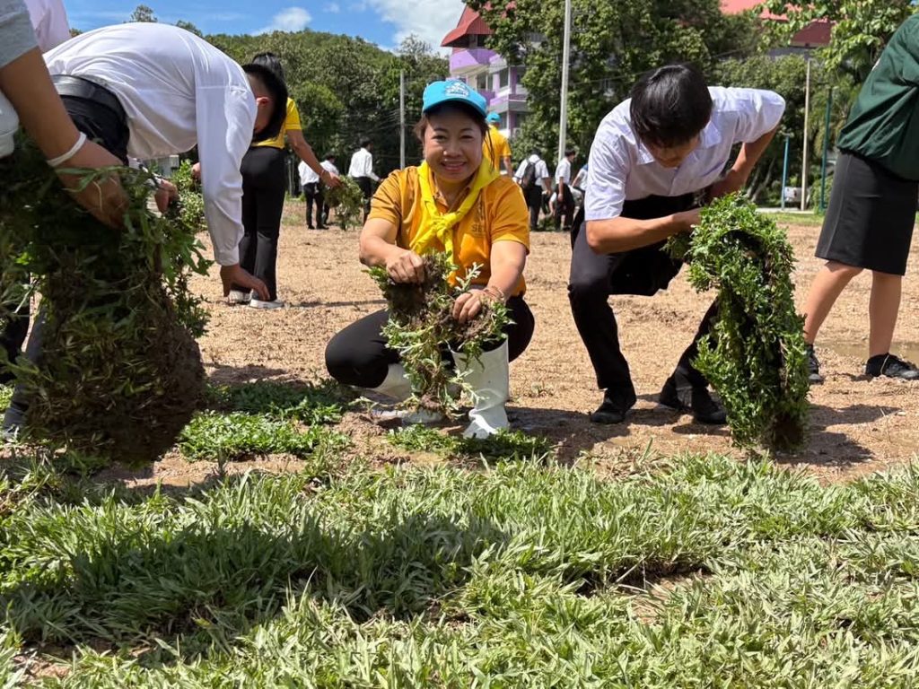 ร่วมทำกิจกรรมจิตอาสา ปรับปรุงภูมิทัศน์ปลูกหญ้าและปล่อยปลา เนื่องในวันเฉลิมพระชนมพรรษา สมเด็จพระนางเจ้าสุทิดา พัชรสุธาพิมลลักษณ พระบรมราชินี