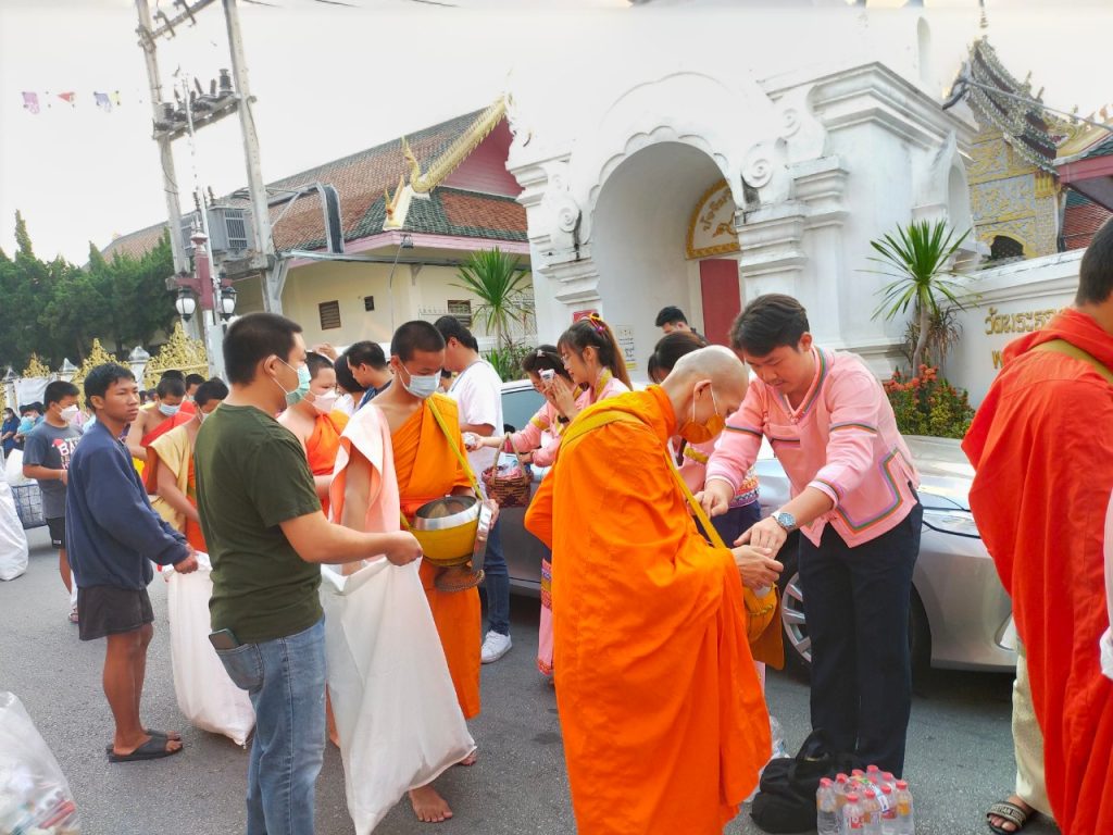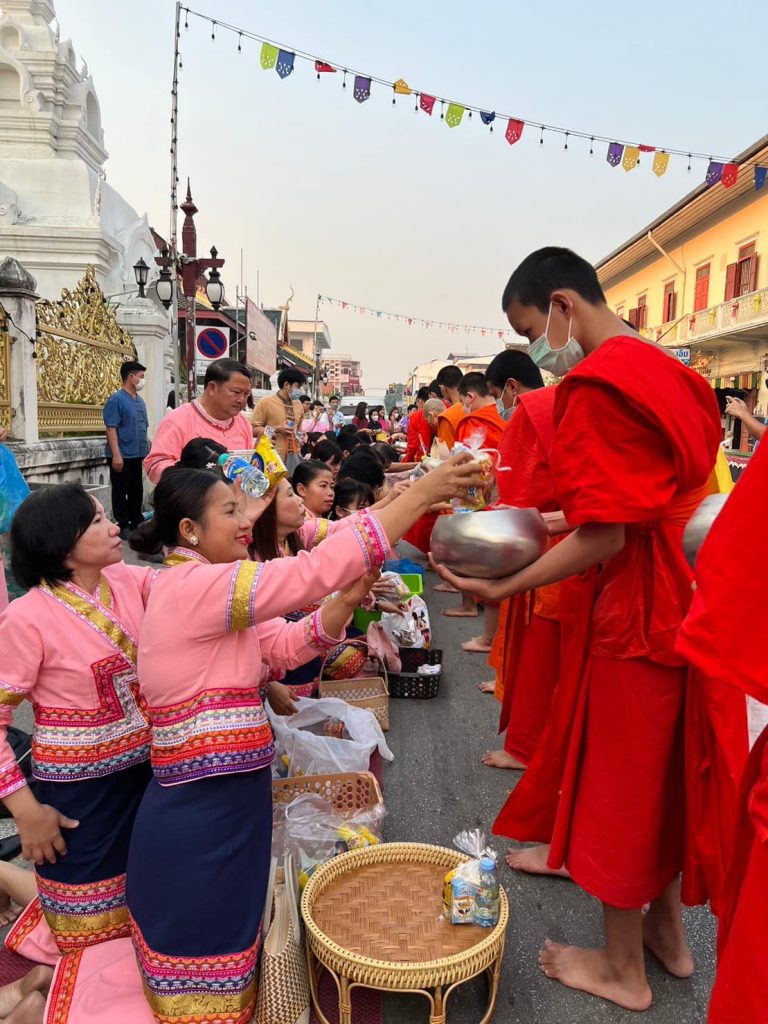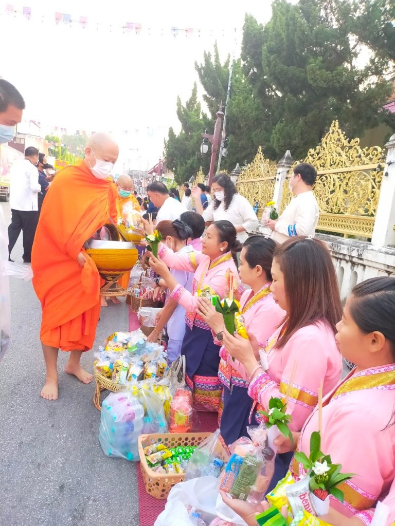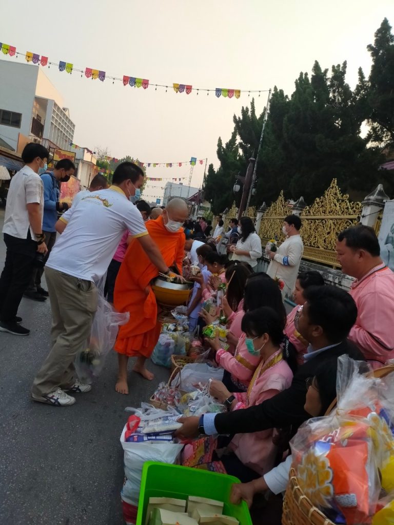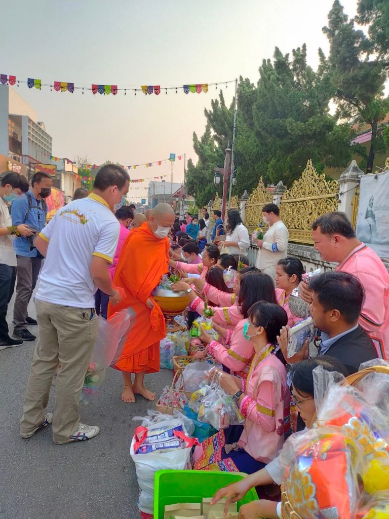 ร่วมทำบุญตักบาตรพระสงฆ์ จำนวน 19 รูป ณ บริเวณถนนอินทยงยศ เพื่อส่งเสริมกิจกรรมทางพระพุทธศาสนา