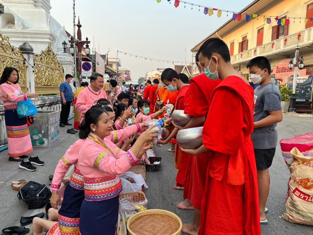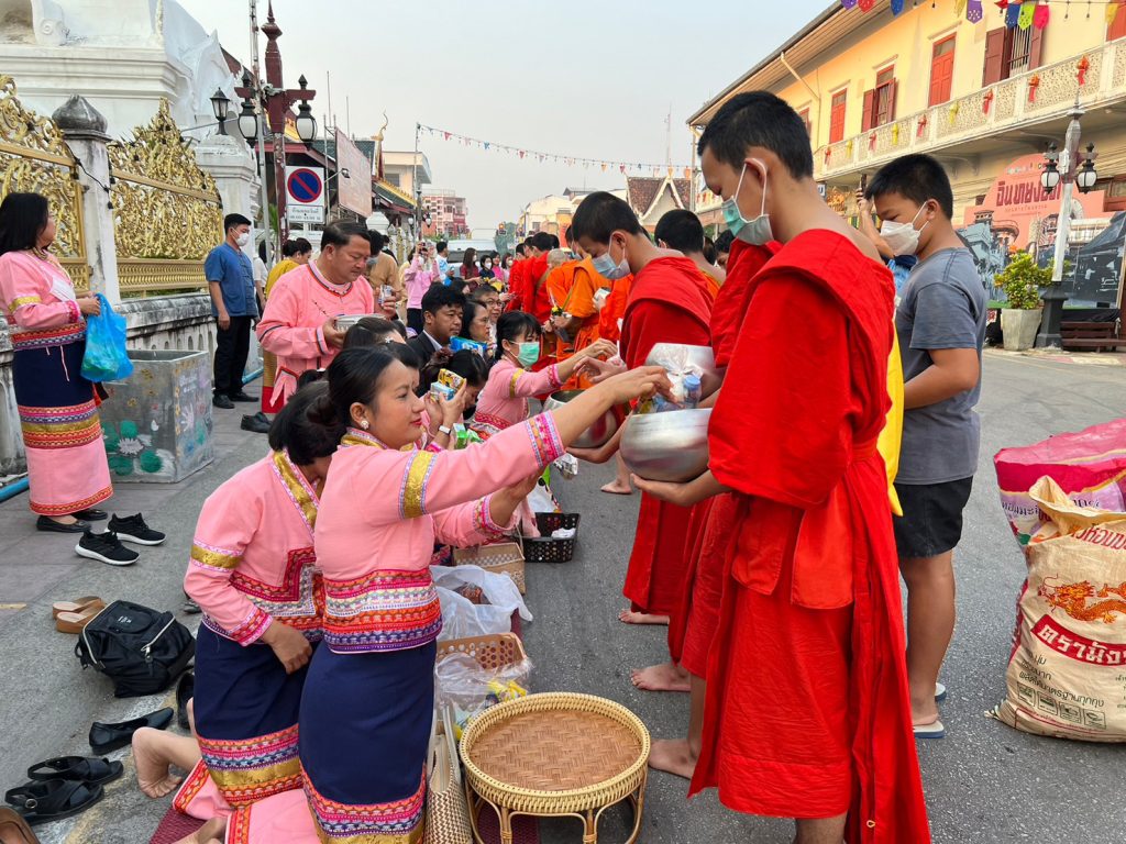 ววันที่ 4 เมษายน 2566 เวลา 07.00 น. วิทยาลัยเกษตรและเทคโนโลยีลำพูน โดยนางสาวศุภัคคณิศร รุ่งเรือง ผู้อำนวยการ พร้อมด้วยคณะผู้บริหาร ผู้แทนครู ร่วมทำบุญตักบาตรพระสงฆ์ จำนวน 19 รูป ณ บริเวณถนนอินทยงยศ (ด้านหลังวัดพระธาตุหริภุญชัย วรมหาวิหาร ตั้งแต่แยกพิพิธภัณฑสถานแห่งชาติหริภุญไชย ถึงแยกร้านบะหมี่โกฮัง) เพื่อส่งเสริมกิจกรรมทางพระพุทธศาสนาและ ส่งเสริมให้คณะครูได้น้อมนำหลักธรรมทางพระพุทธศาสนาและนำมาประยุกต์ใช้ในชีวิตประจำวันได้อย่างปกติสุข จังหวัดลำพูน เป็นเมืองเก่าแก่มากว่า 1,400 ปี สั่งสมความเป็นเมืองที่มีอารยธรรมที่เก่าแก่ มายาวนาน มีการดำเนินวิถีชีวิตแบบเรียบง่าย และทุกเช้าจะมีกิจกรรมการทำบุญตักบาตรแก่พระสงฆ์ ที่ออกรับบิณฑบาตจากศรัทธาสาธุชน ตลอดเส้นทางสายวัฒนธรรม “ถนนอินทยงยศ”