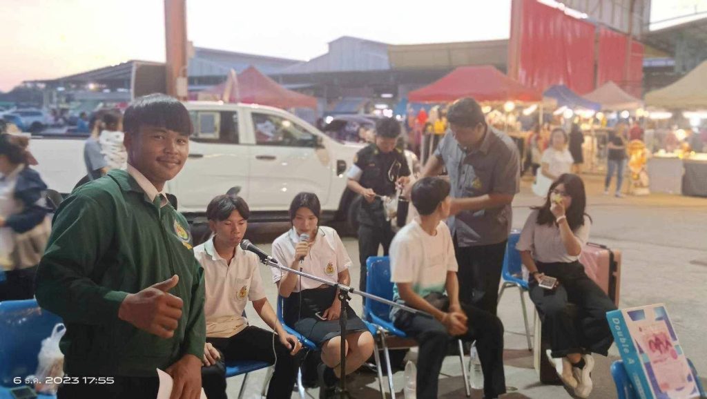 วันที่ 6 ธันวาคม 2566 ดร.จักรกฤษณ์ ทิพเลิศ ผู้อำนวยการวิทยาลัยเกษตรและเทคโนโลยีลำพูน มอบหมายให้นายสมพร ไขระวิ หัวหน้างานกิจกรรมนักเรียน นักศึกษานำนักเรียน นักศึกษา ลงพื้นที่ทำกิจกรรมลานดนตรี และประชาสัมพันธ์การจัดงานประชุมวิชาการระดับชาติ องค์การเกษตรกรในอนาคตแห่งประเทศไทย ในพระราชูปถัมภ์สมเด็จพระเทพรัตนราชสุดา ฯ สยามบรมราชกุมารี ครั้งที่ 44 ณ ตลาดนัดจตุจักร จังหวัดลำพูน