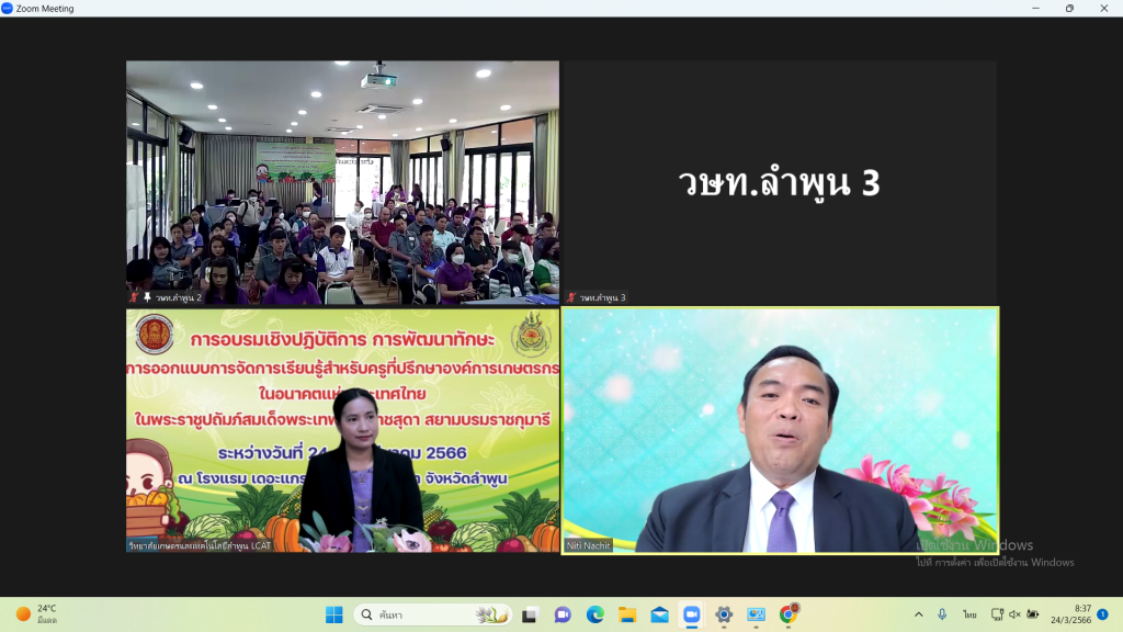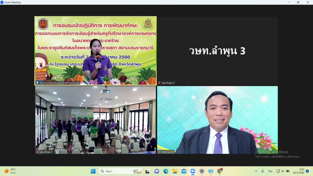 ระหว่างวันที่วันที่ 24-26 มีนาคม 2566 วิทยาลัยเกษตรเเละเทคโนโลยีลำพูน ได้รับมอบหมายให้เป็นเจ้าภาพ ในการจัดการอบรมเชิงปฏิบัติการ การพัฒนาทักษะการออกเเบบการจัดการเรียนรู้สำหรับครูที่ปรึกษาองค์การเกษตรกรในอนาคตแห่งประเทศไทย ในพระราชูปถัมภ์สมเด็จพระเทพรัตนราชสุดาฯ สยามบรมราชกุมารี โดยได้รับเกียรติจากท่านดร.นิติ นาชิต ที่ปรึกษาด้านมาตรฐานอาชีวศึกษาธุรกิจเเละบริการ เป็นประธานในพิธีเปิด ในรูปเเบบออนไลน์ ณ โรงเเรมเดอะเเกรนด์ จามจุรี รีสอร์ท จังหวัดลำพูน สามารถดูภาพได้จาก link : https://photos.app.goo.gl/Kz8qWo6httqBe3ow9