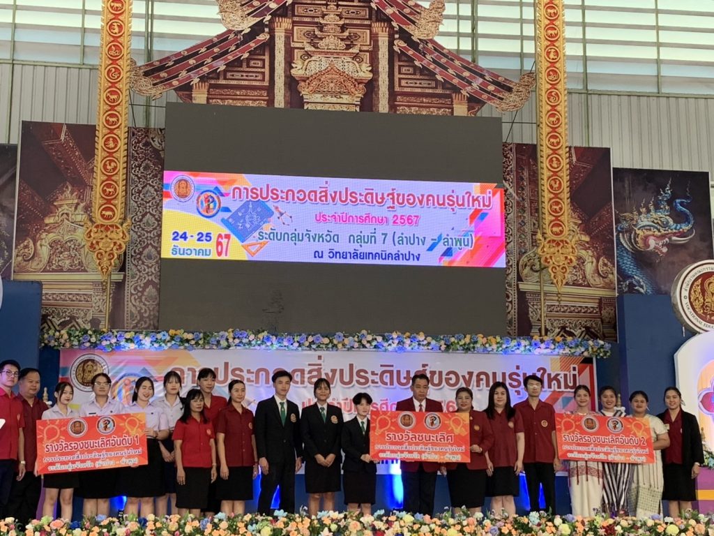 วิทยาลัยเกษตรและเทคโนโลยีลำพูน ขอแสดงความยินดีกับ ครูผู้ควบคุม และนักศึกษาที่ได้รับรางวัล ชนะเลิศสิ่งประดิษฐ์ประเภทที่ 6 สิ่งประดิษฐ์ด้านนวัตกรรมและเทคโนโลยี ผลิตภัณฑ์เชิงพาณิชย์การประกวดสิ่งประดิษฐ์ของคนรุ่นใหม่ประจำปีการศึกษา 2567 ระหว่างวันที่ 24 -25 ธันวาคม 2567 ณ วิทยาลัยเทคนิคลำปาง