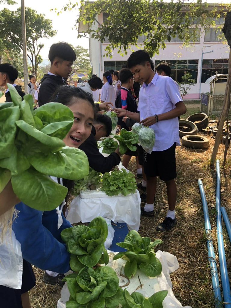 ผลผลิตจากการออกปฏิบัติการสอนหลักสูตรระยะสั้น เรื่อง การปลูกผัก Hydro box ณ โรงเรียนบ้านปงแม่ลอบ อำเภอแม่ทา จังหวัดลำพูน