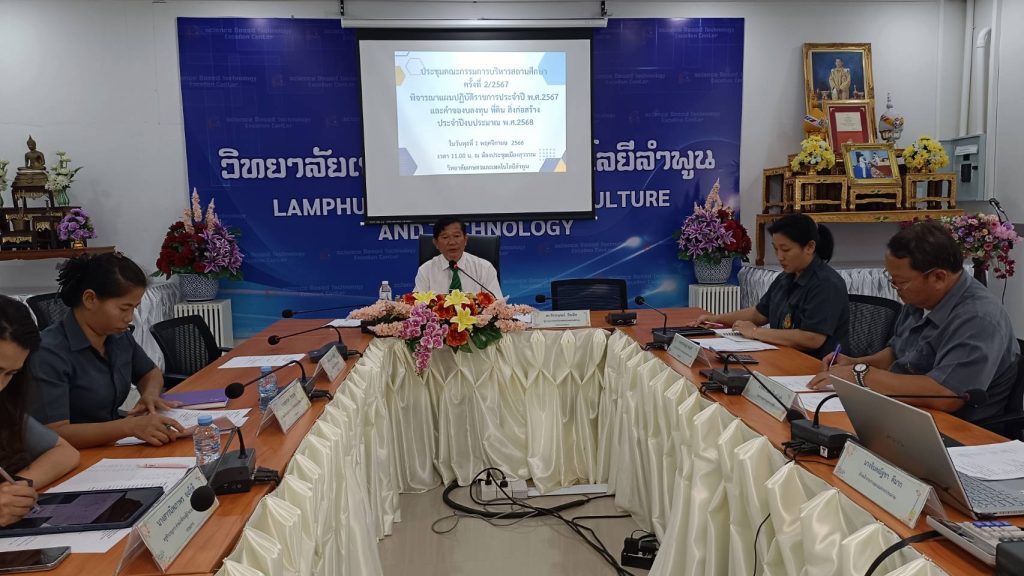 วิทยาลัยเกษตรและเทคโนโลยีลำพูน จัดการประชุมพิจารณาแผนปฏิบัติการประจำปีงบประมาณ 2567 และพิจารณาจัดทำคำขอ งบลงทุน ที่ดิน สิ่งก่อสร้างประจำปีงบประมาณ 2568