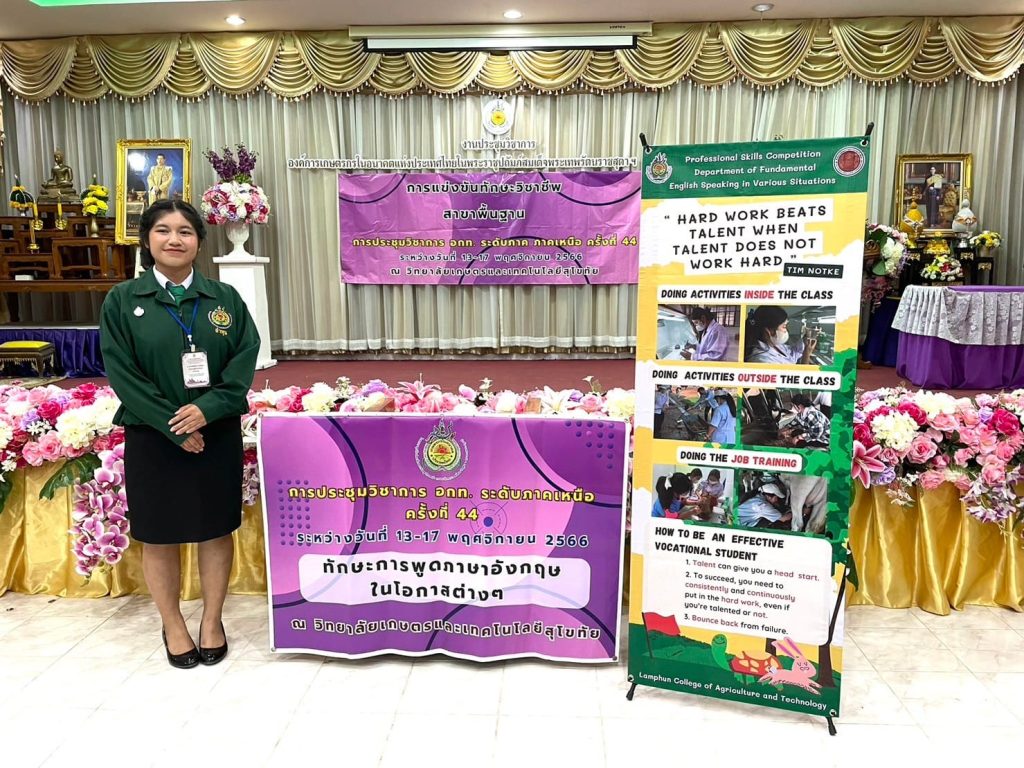 วิทยาลัยเกษตรและเทคโนโลยีลำพูน ขอแสดงความยินดีกับนักเรียนนักศึกษาที่ได้รับรางวัลจากการแข่งขันทักษะ อกท. ปีการศึกษา 2566 ระดับภาค ภาคเหนือ ครั้งที่ 44